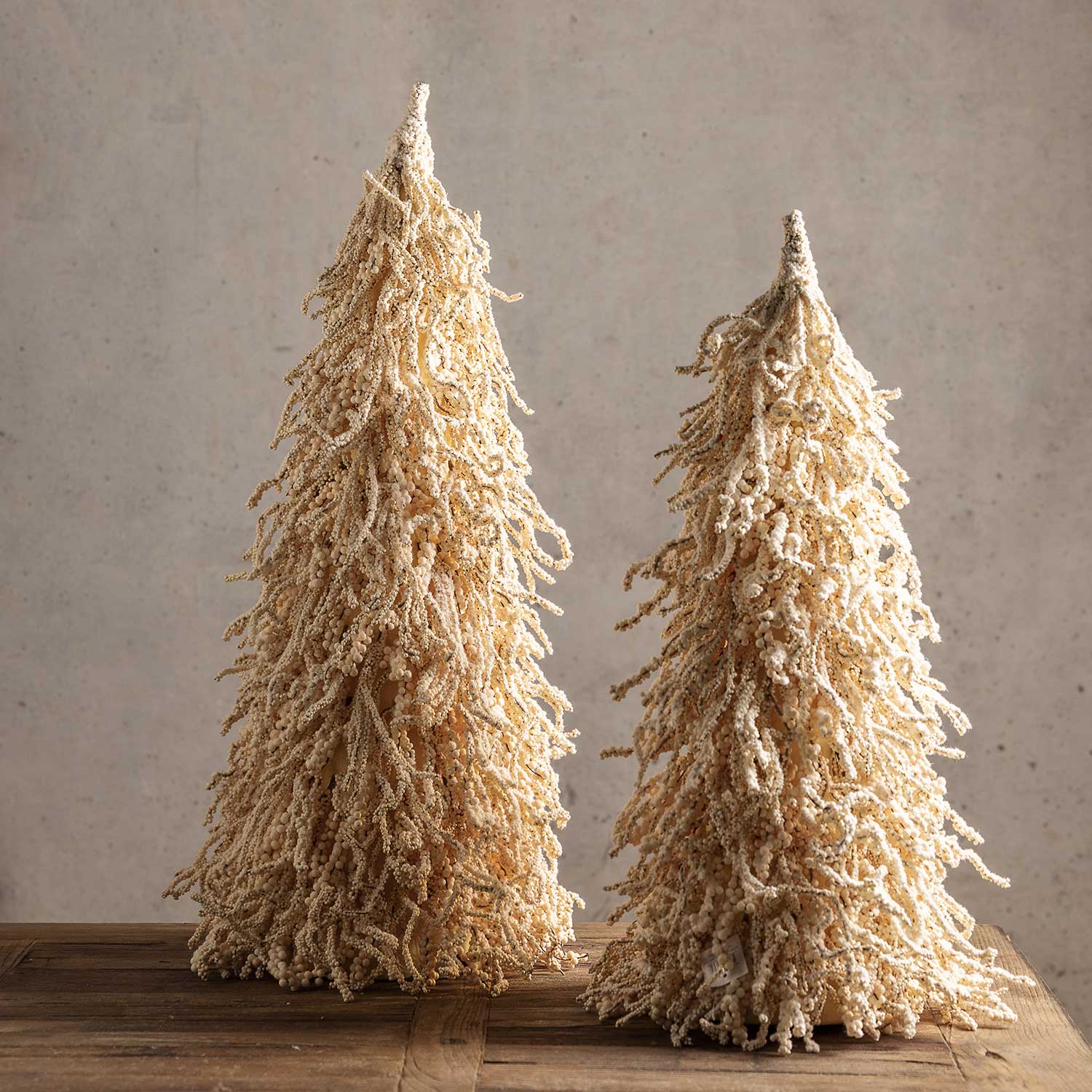 Árbol artificial de 70 cm de altura, ideal para aportar frescura, decorar entornos y crear ambientes acogedores con un toque de Navidad de color crema. De fácil cuidado, no requiere agua, sol ni tratamientos especiales. Nota: Cada árbol puede presentar variaciones en su forma, debido a su elaboración artesanal.