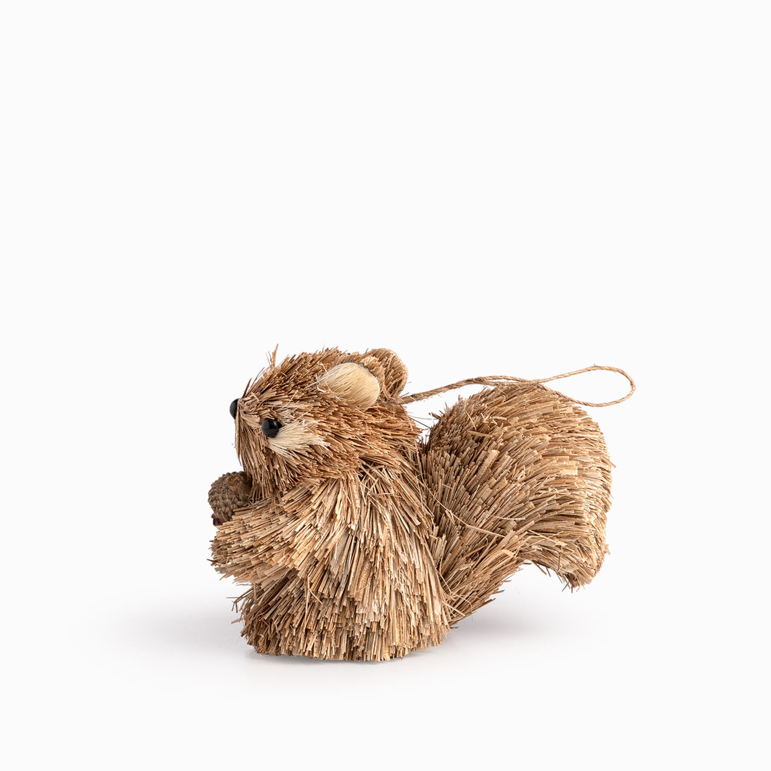 Adorno de yute y poliespuma en forma de ardilla para colgar. Es el detalle perfecto para tu árbol de Navidad o corona, aportando un toque diferente y único a tu decoración. Su color y forma te permiten combinarlo fácilmente con otros adornos.