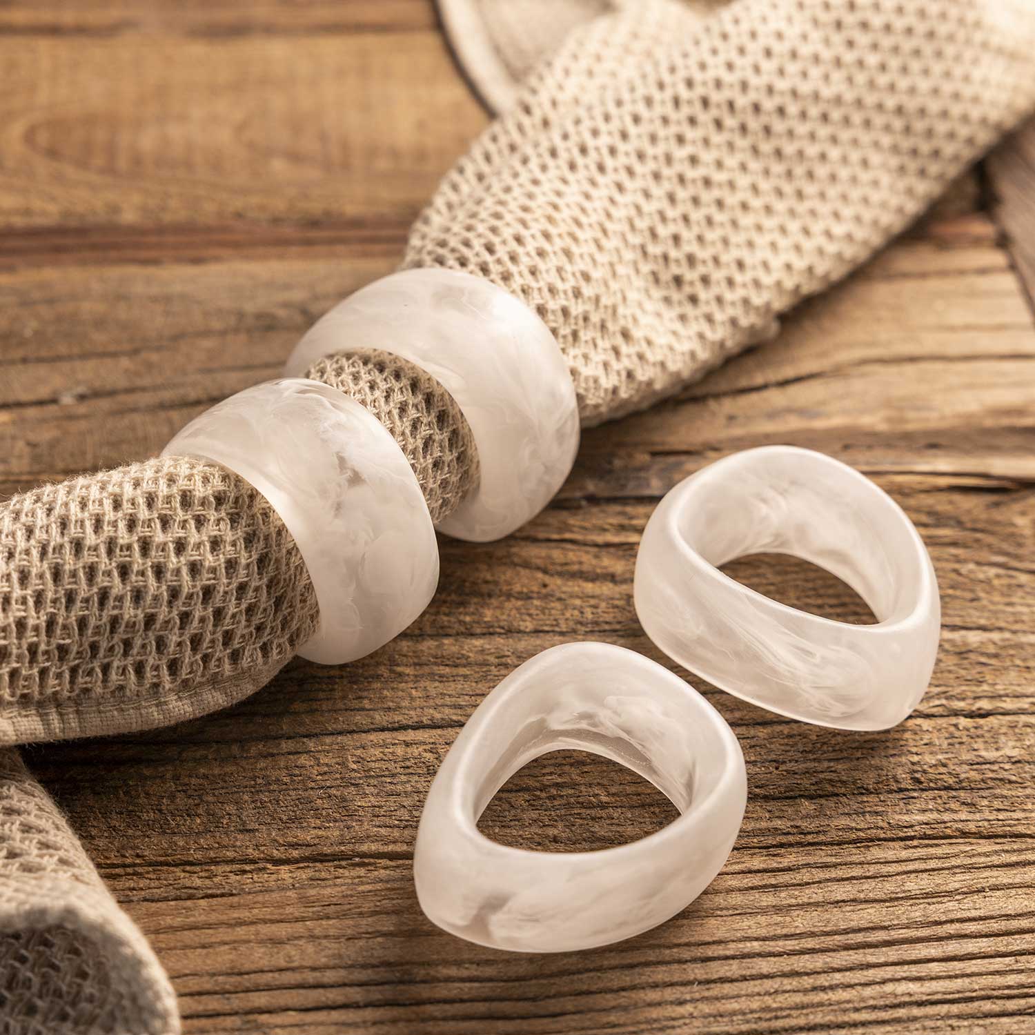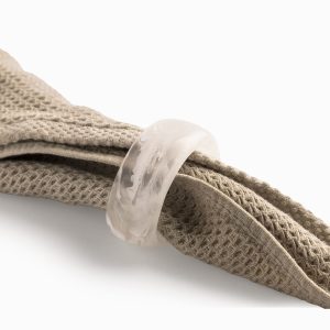 Es la solución ideal para quien busca accesorios de mesa con diseño, con materiales con cuerpo y una estética que conecta con la naturaleza. La poliresina es un material altamente duradero que no se raya fácilmente y resiste caídas accidentales, manteniendo su acabado mate intacto. Son ideales para servilletas de tela gruesa o papel premium, permitiendo que luzcan ordenadas y con volumen. Son resistentes a la humedad y se limpian con un simple paño húmedo, lo que los hace mucho más prácticos que los aros de metal que requieren pulido.