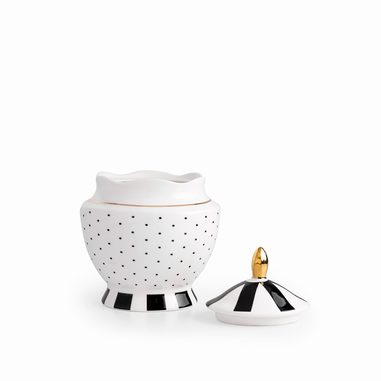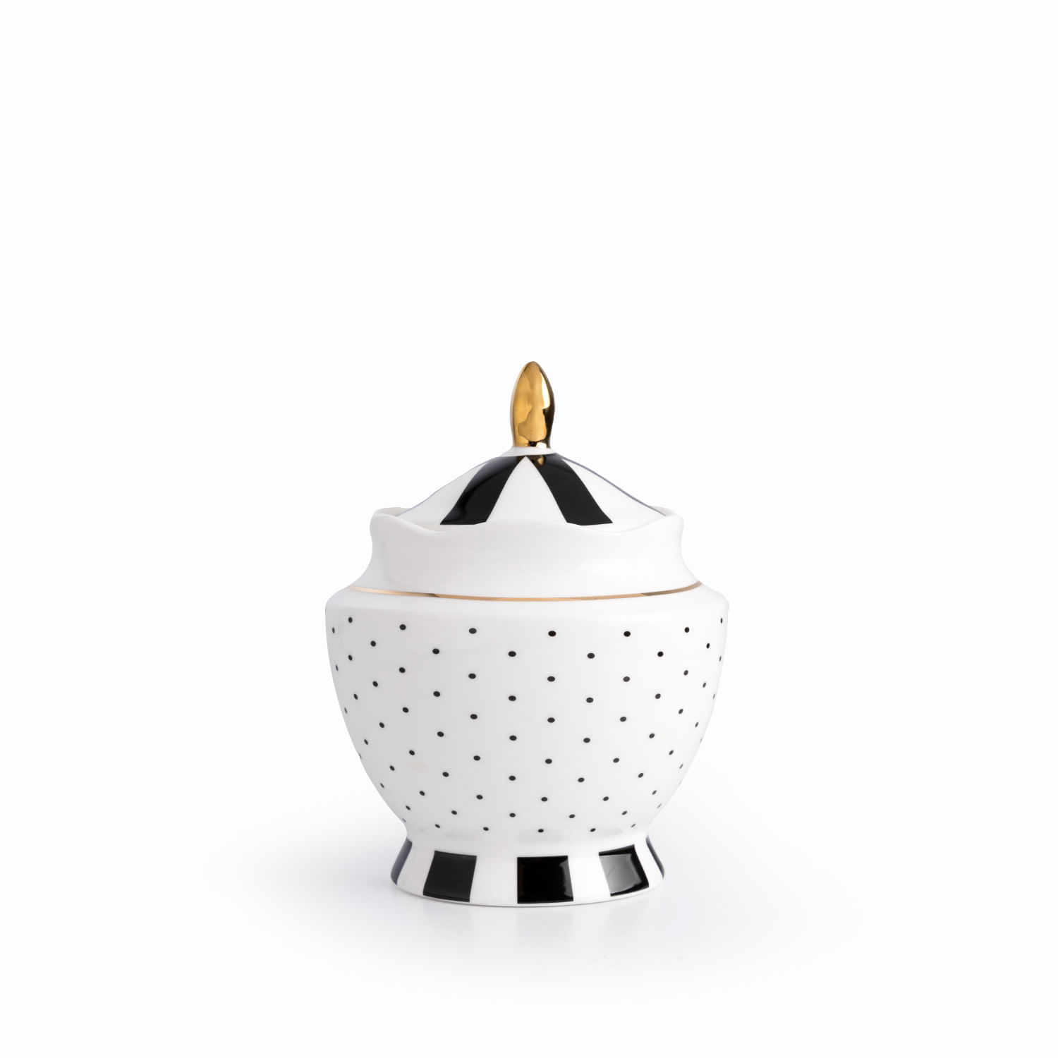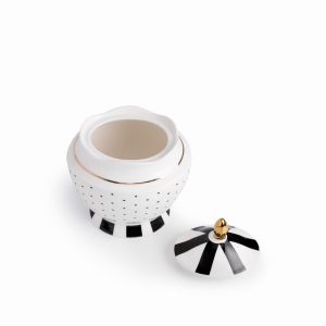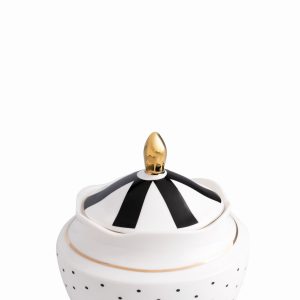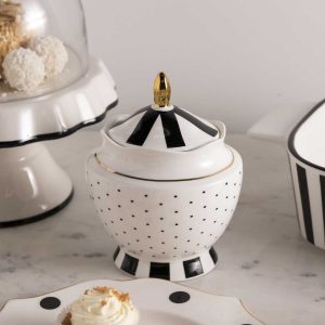El clásico contraste blanco y negro complementa perfectamente el resto de la colección, añadiendo un acento minimalista y elegante a tu mesa de café o té. Su diseño es la declaración de estilo perfecta para el anfitrión que cuida cada detalle. La azucarera es en porcelana New Bone China y tiene capacidad para 490ml.
