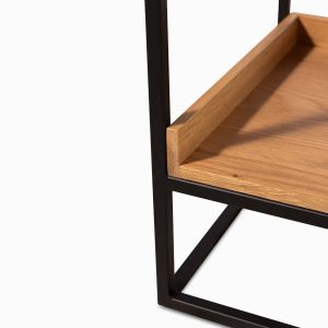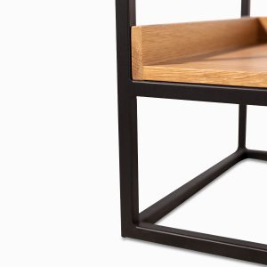 Silla tipo banco de la colección Berlín su estructura es en MDF y enchapada en roble, sus acabados son únicos y originales, este butaco puede estar en espacios como la sala o el comedor.