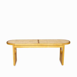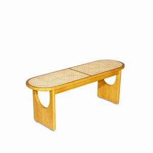 Silla tipo banca en madera y ratán para alcoba o sala, las variaciones y las imperfecciones hacen parte de su diseño y lo convierten en una pieza única.