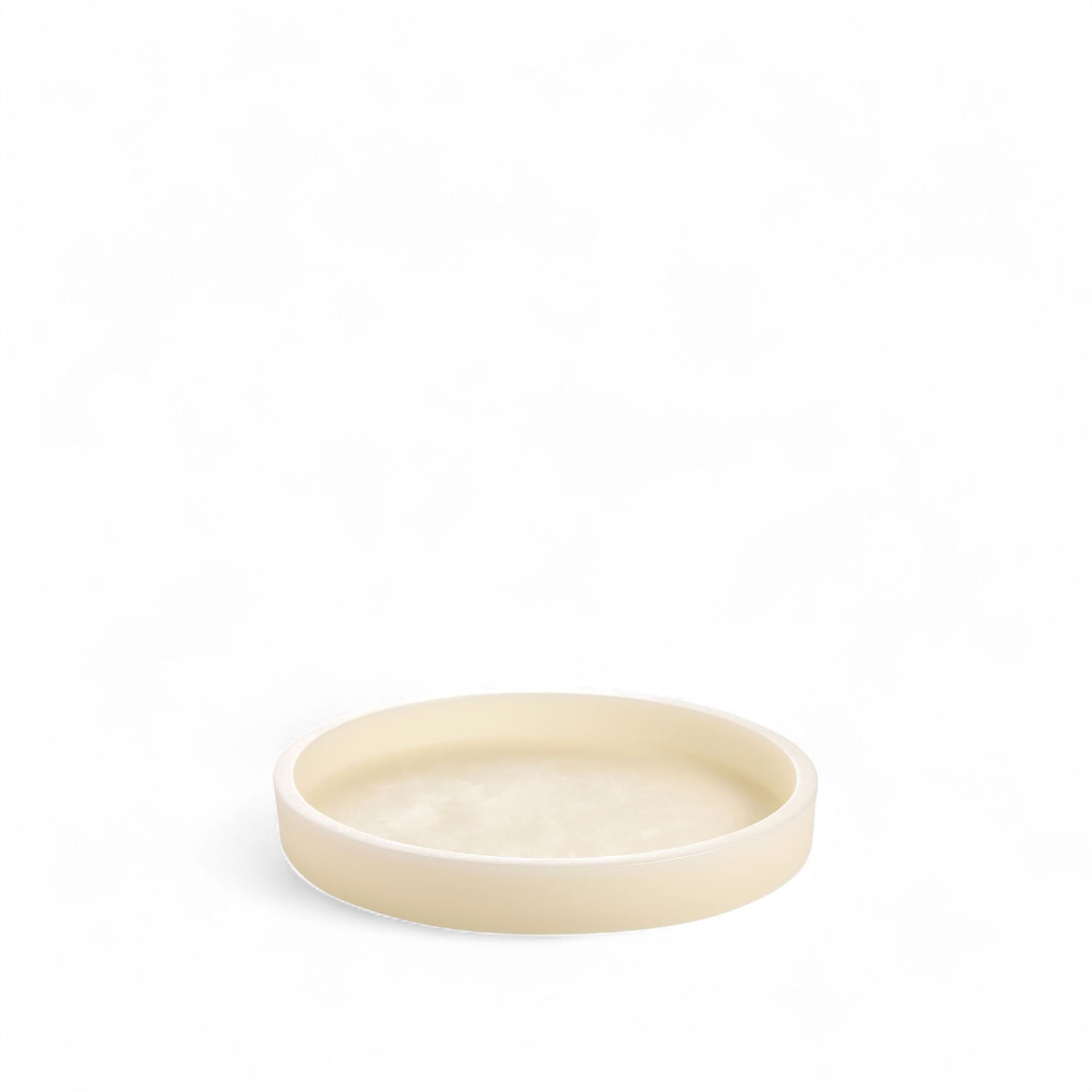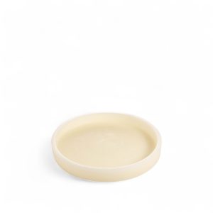 Bandeja redonda en parafina, ideal para decorar con velas. Debido a su material cada pieza es única y su forma puede tener variaciones con altas temperaturas.