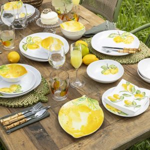 Presenta una forma orgánica que imita un limón real con colores brillantes, ideal para añadir vitalidad y un aire veraniego a tus presentaciones. Fabricada en melamina, lo que la hace extremadamente ligera, resistente a roturas y perfecta para el uso diario o eventos al aire libre.