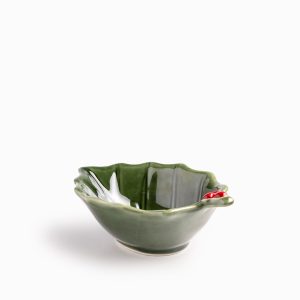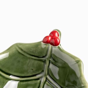Realza la decoración de tu mesa de Navidad con este tazón de cerámica en forma de hoja. Con 170 ml de capacidad, es ideal para servir frutos secos y salsas, dándole un toque natural y único a tus celebraciones.
