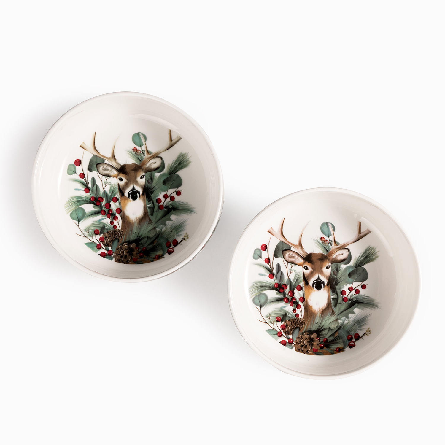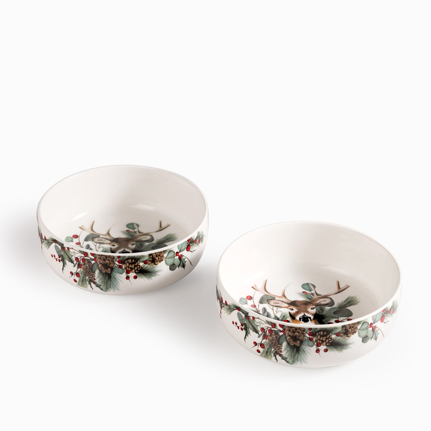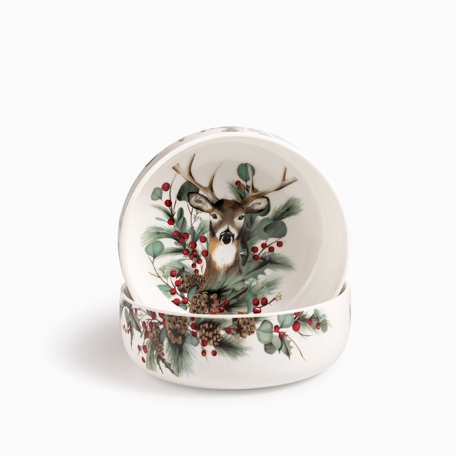 Set por dos platos hondo en la vajilla Navidad Silvestre Forest, tiene la magia envolvente de los renos inspira bellas creaciones de follaje y patrones naturales. Ideal para servir cremas y sopas con capacidad para 850 ml.