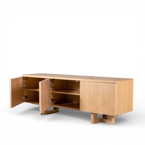 El buffet Aura es el mueble que redefine el almacenamiento en tu hogar. Diseñado para impactar, ofrece una superficie de exhibición amplia y una capacidad interior que te permite organizar tu cristalería, vajilla o menaje con total discreción. Su presencia y el acabado en madera natural añaden una profundidad y calidez instantáneas a tu espacio.