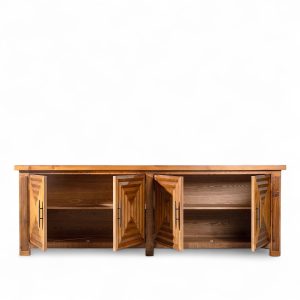 Mesa consola fabricada con madera reciclada, ideal para agregar un toque rústico y moderno a corredores, entradas, y pasillos. Su diseño moderno y estructura robusta hacen de esta pieza una opción versátil que no solo optimiza el espacio, sino que también añade un elemento funcional y estético a cualquier ambiente del hogar.