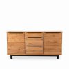 Cajonera en madera con diseño minimalista de la colección Lenon, se adapta a espacios dinámicos como la sala de estar, aportándole personalidad a la decoración con sus patrones geométricos e imperfecciones que la convierten en una pieza única. Es funcional y versátil para el almacenamiento.