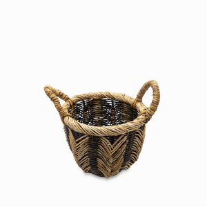 Canasto redondo decorativo en ratán con manija de la colección Tossa, para sala o comedor su diseño contribuye al estilo de tu hogar.
