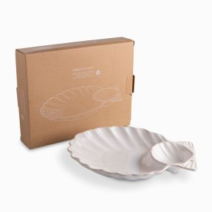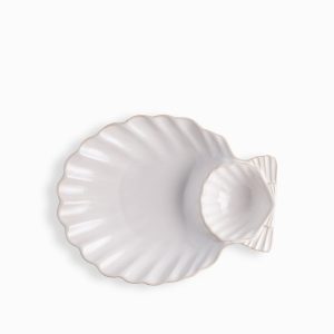 Lleva la mesa tus aperitivos con el chip and dip Costa Serena, la pieza central de cerámica diseñada para el anfitrión que busca funcionalidad y belleza. Este elegante plato de servicio combina un amplio borde exterior para tus chips o snacks con un cuenco integrado para salsas. Su diseño robusto en color beige infunde la calma de la costa en cualquier reunión social.