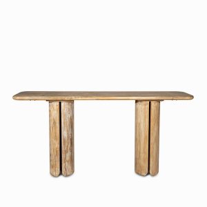 Consola decorativa fabricada en madera natural de pino, ideal para agregar un toque rústico y moderno a corredores, entradas, y pasillos. Su diseño minimalista y estructura robusta hacen de esta pieza una opción versátil que no solo optimiza el espacio, sino que también añade un elemento funcional y estético a cualquier ambiente del hogar.