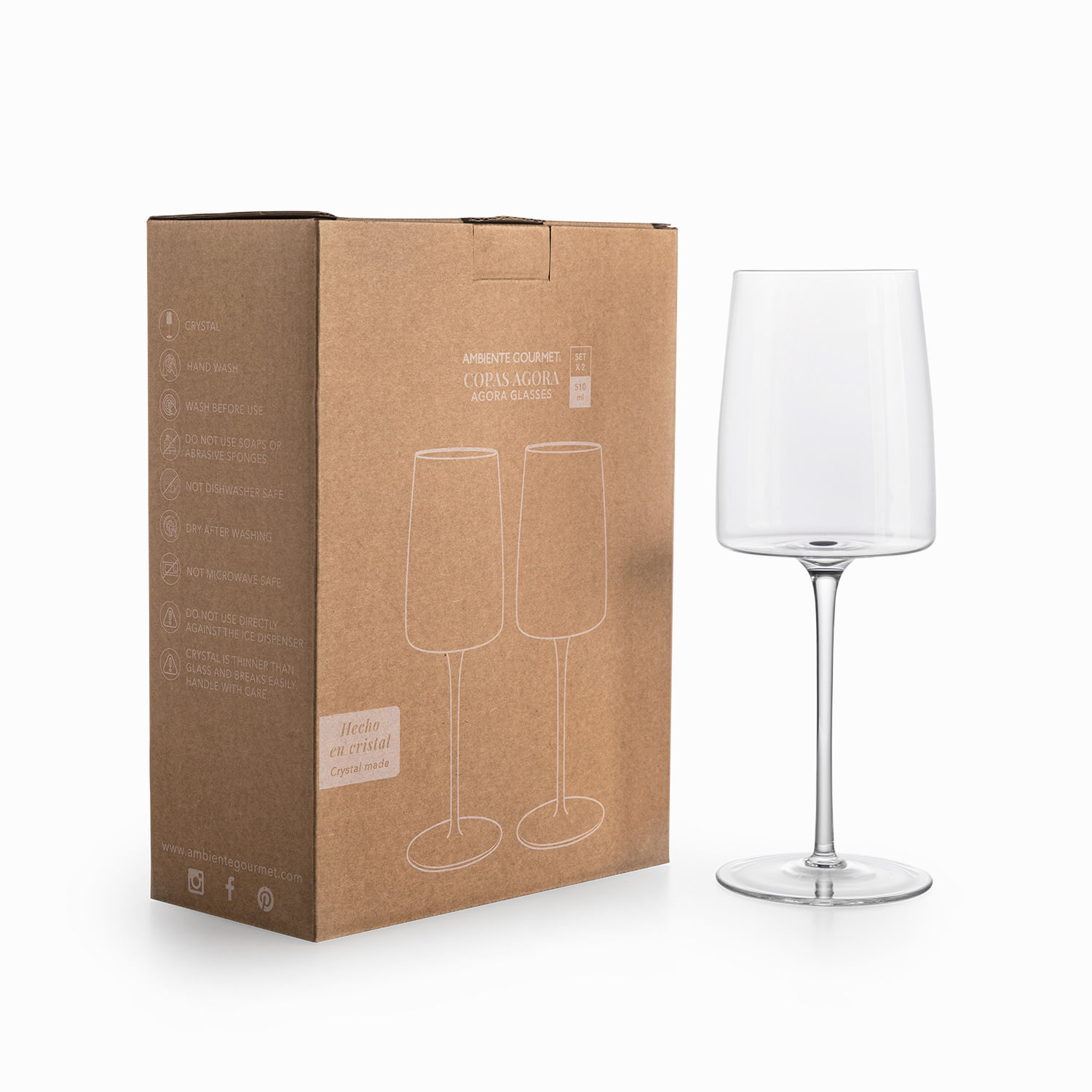 La línea Agora ha sido diseñada para quienes buscan la máxima elegancia sin el peso de la cristalería tradicional. Su silueta aporta una verticalidad moderna a tu mesa, logrando un equilibrio perfecto entre minimalismo y lujo. Al ser totalmente transparentes, permiten apreciar con nitidez cada matiz cromático de la bebida.