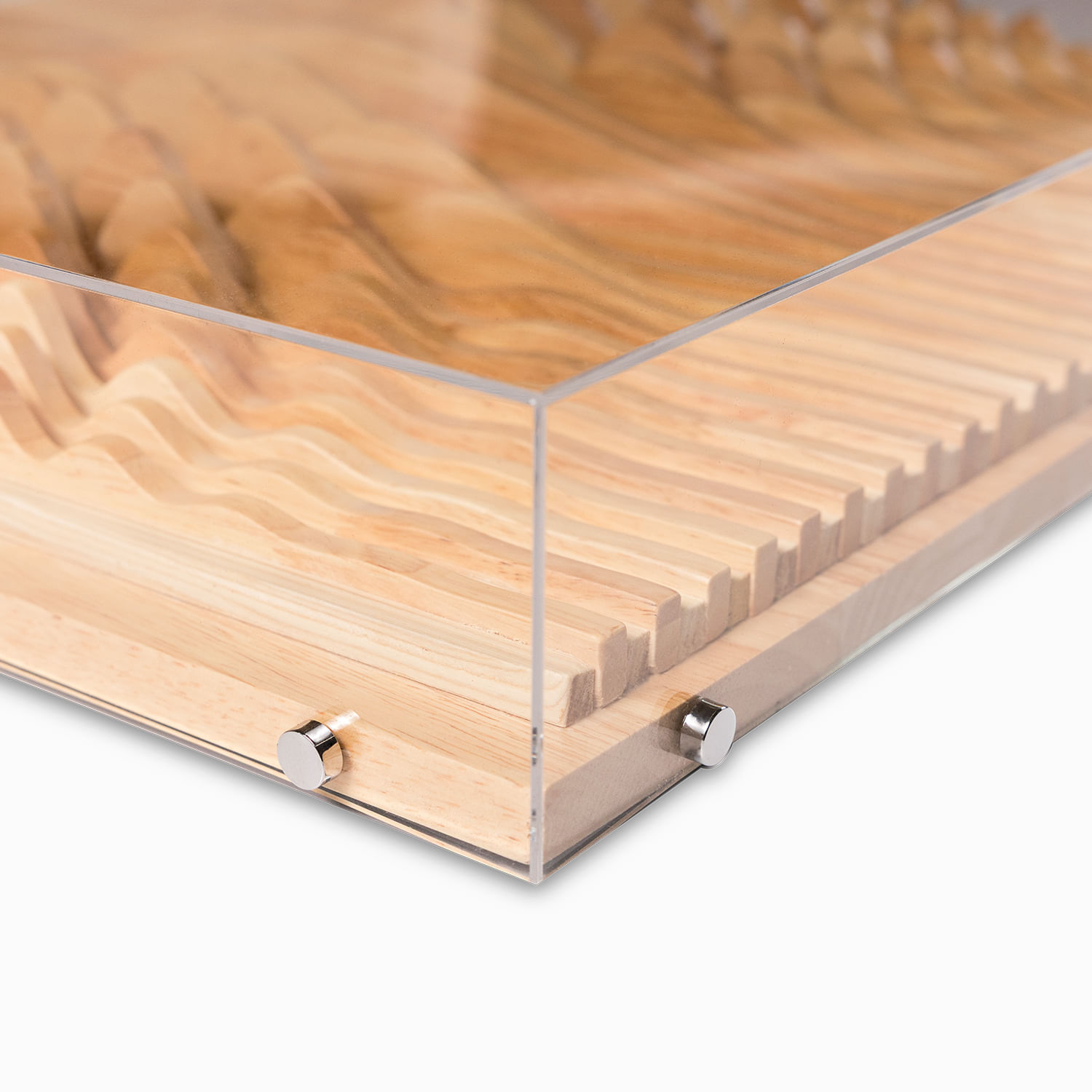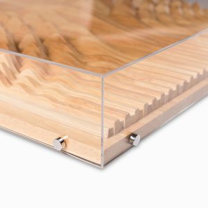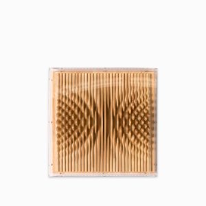 Cuadro con relieve geométrico en plástico y madera. Pieza artística única que refleja en cada espacio del hogar la personalidad y estilo de sus habitantes. Este cuadro dará a tu hogar un estilo personal y único.