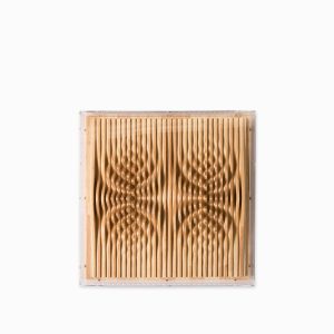 Cuadro con relieve geométrico en plástico y madera. Pieza artística única que refleja en cada espacio del hogar la personalidad y estilo de sus habitantes. Este cuadro dará a tu hogar un estilo personal y único.