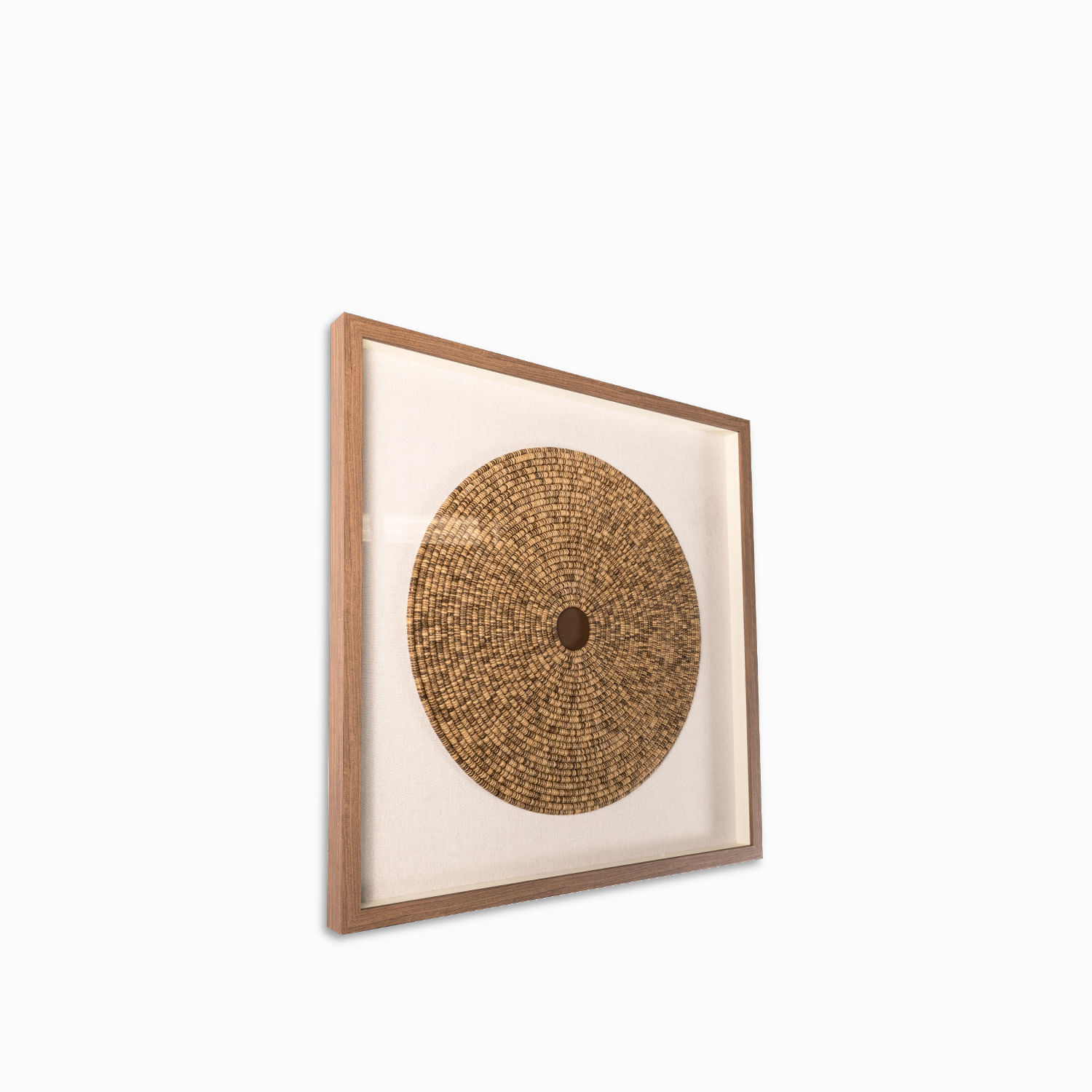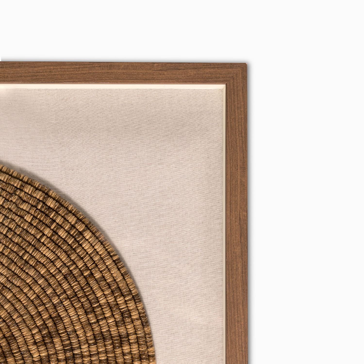 Cuadro con relieve geométrico en poliestireno y cascara de coco, enmarcado en MDF con lamina de vidrio para cuidar el diseño. Pieza artística única que refleja en cada espacio del hogar la personalidad y estilo de sus habitantes. Este cuadro dará a tu hogar un estilo personal y único.