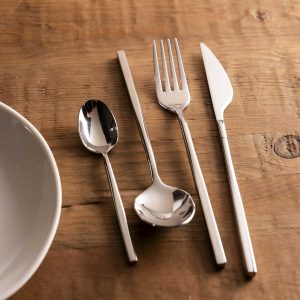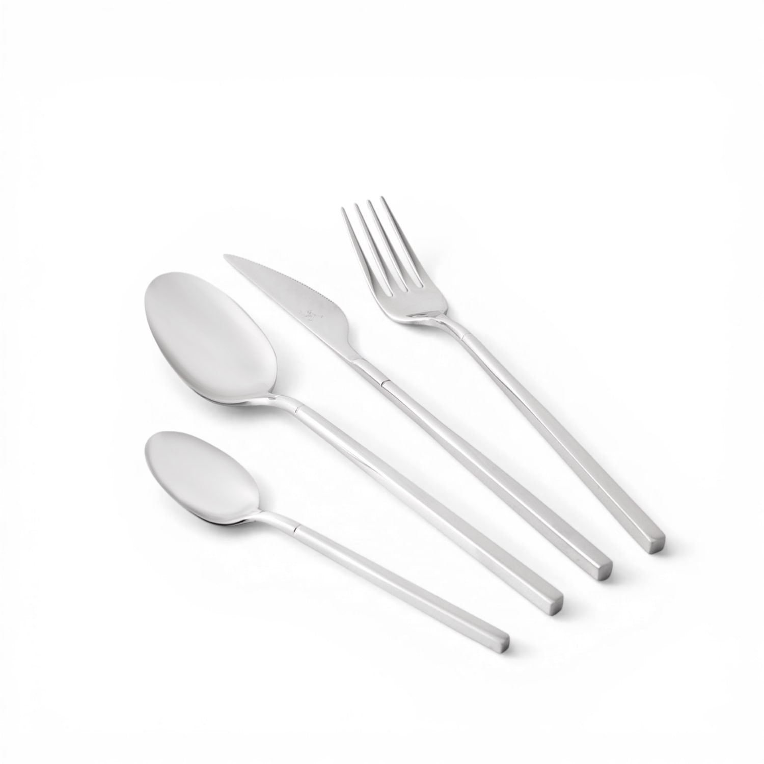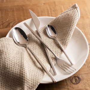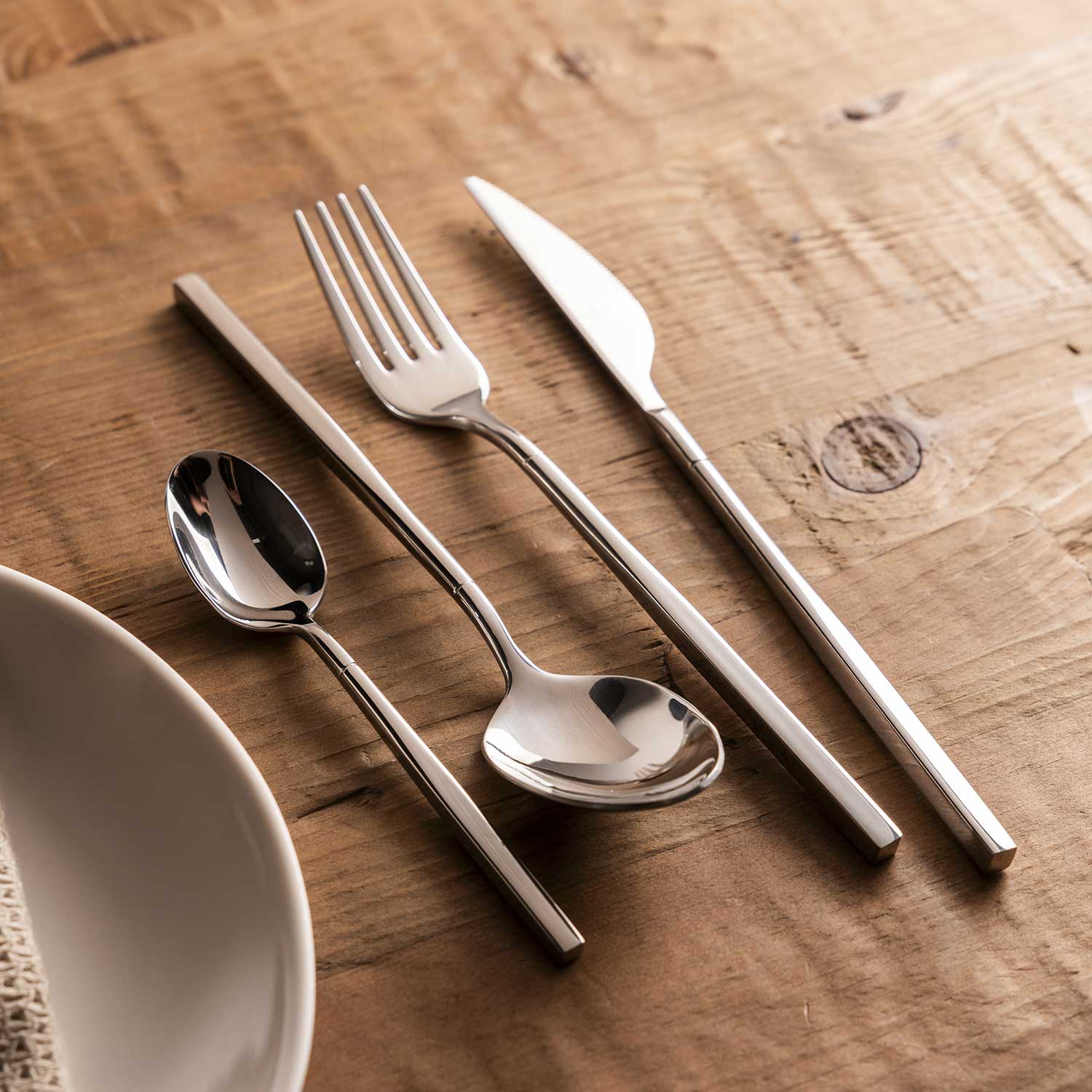 Es la solución integral para un servicio de mesa completo para 4 personas. Los tenedores y cucharas están fabricados en acero 18/10ss, mientras que el cuchillo utiliza acero 13/0ss para un filo superior.
