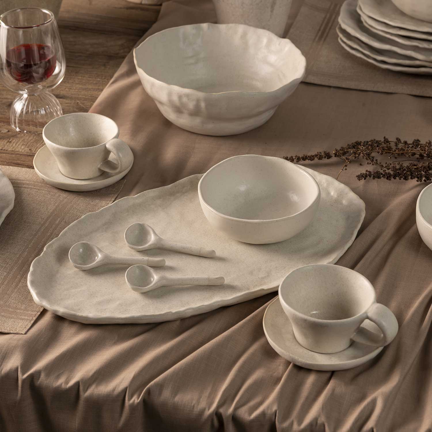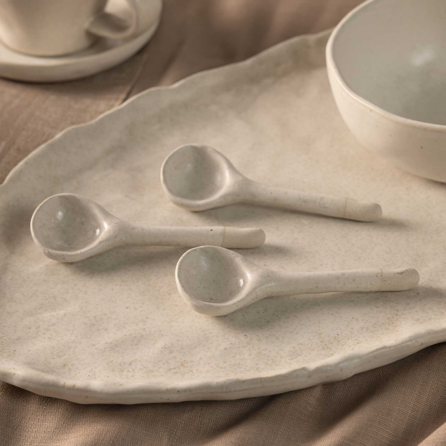 La cuchara Nahua destaca por su equilibrio entre ligereza y resistencia. Con un peso de tan solo 0,03 kg, es una pieza sumamente fácil de manejar, manteniendo la solidez característica de la cerámica de alta calidad, su diseño compacto ha sido pensado para integrarse perfectamente con los tazones y platos de la misma línea.