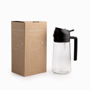 El dispensador de aceite clear está diseñado para un manejo cómodo con una sola mano. Gracias a su mango ergonómico y su tapa con boquilla de precisión, podrás aliñar tus ensaladas o sartenes evitando derrames innecesarios y manteniendo tu cocina impecable. Su cuerpo de vidrio sodalime permite visualizar el contenido y nivel de aceite en todo momento, manteniendo una estética limpia y organizada. Cuenta con un sistema versátil que facilita tanto el vertido controlado como la aplicación precisa de tus aceites favoritos.