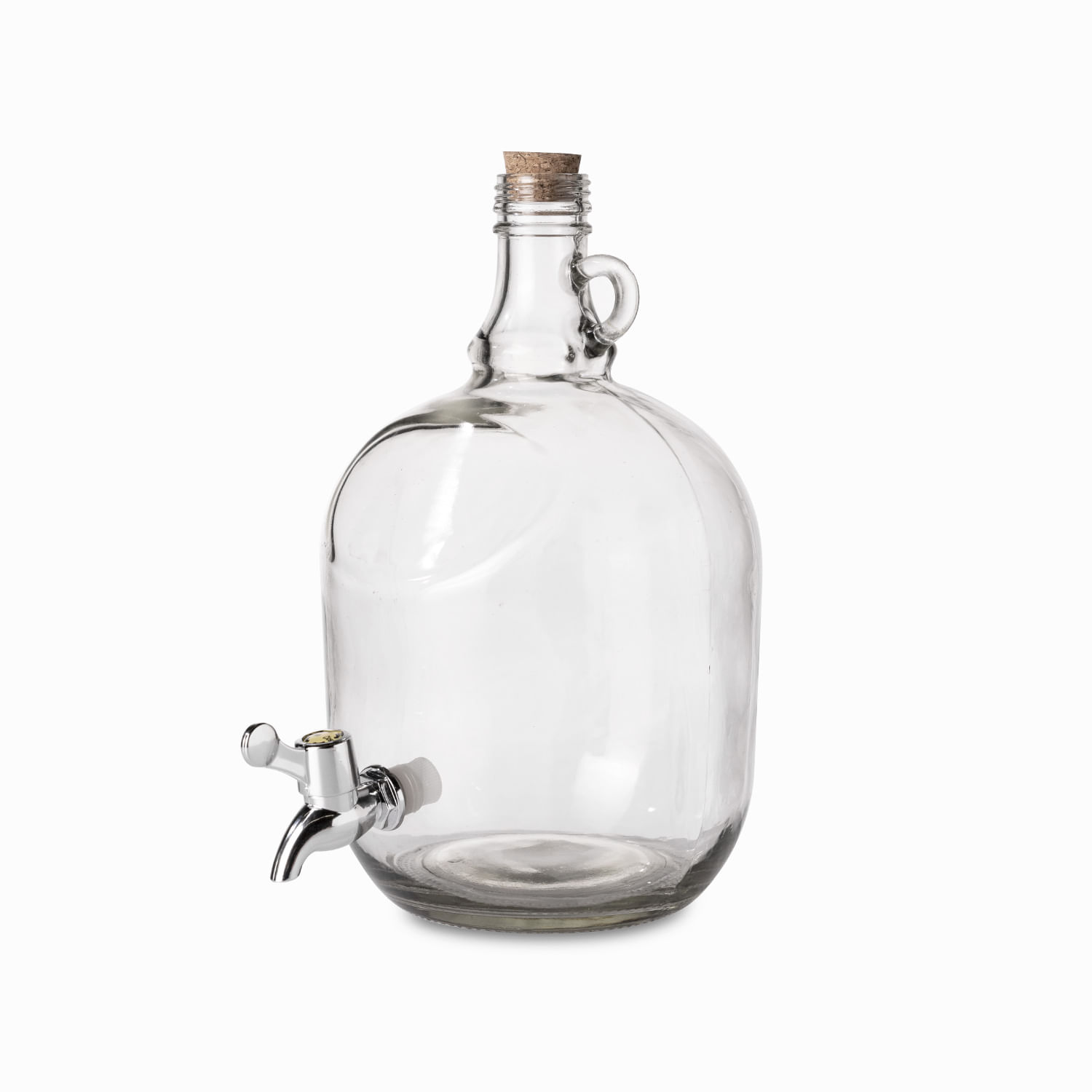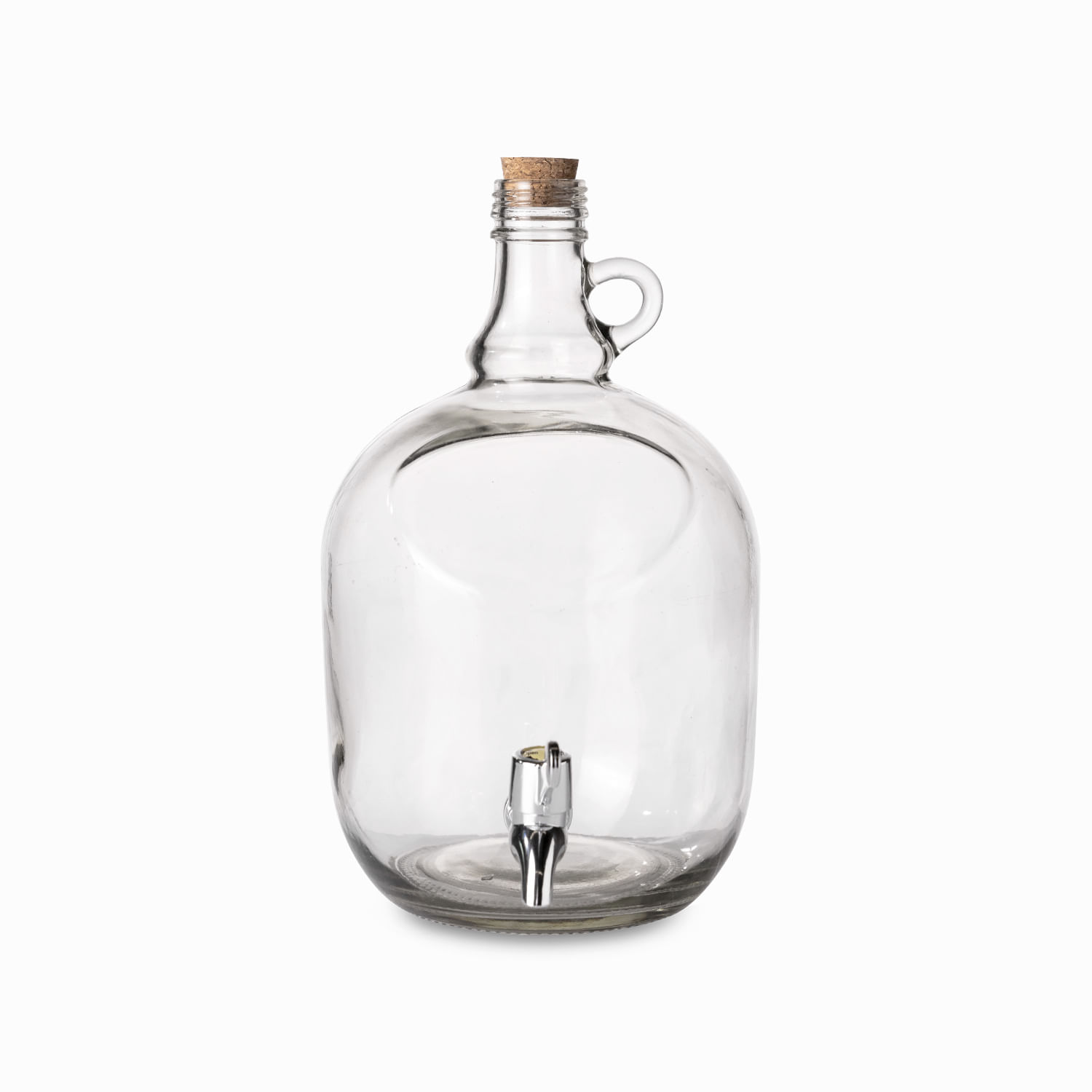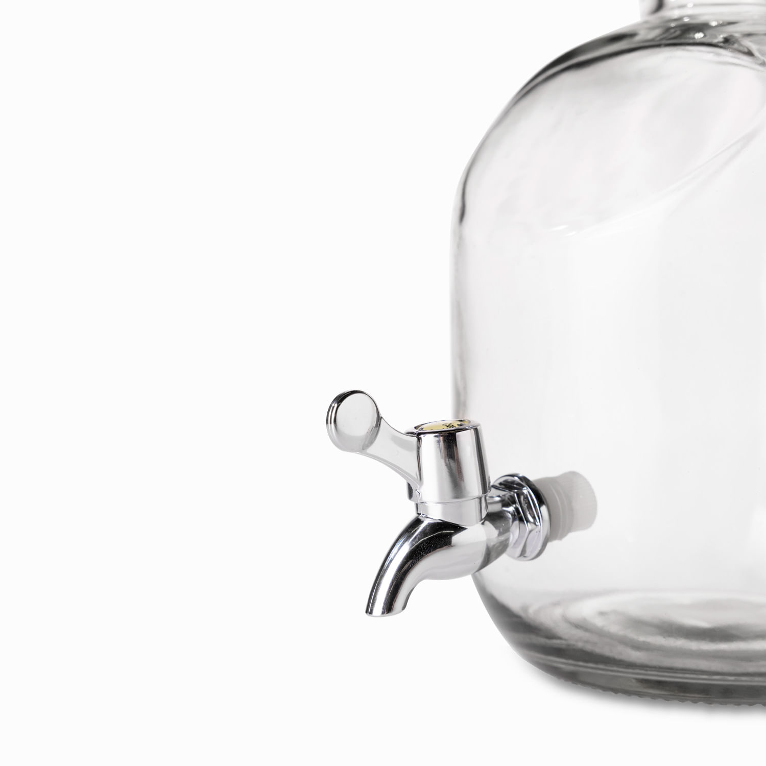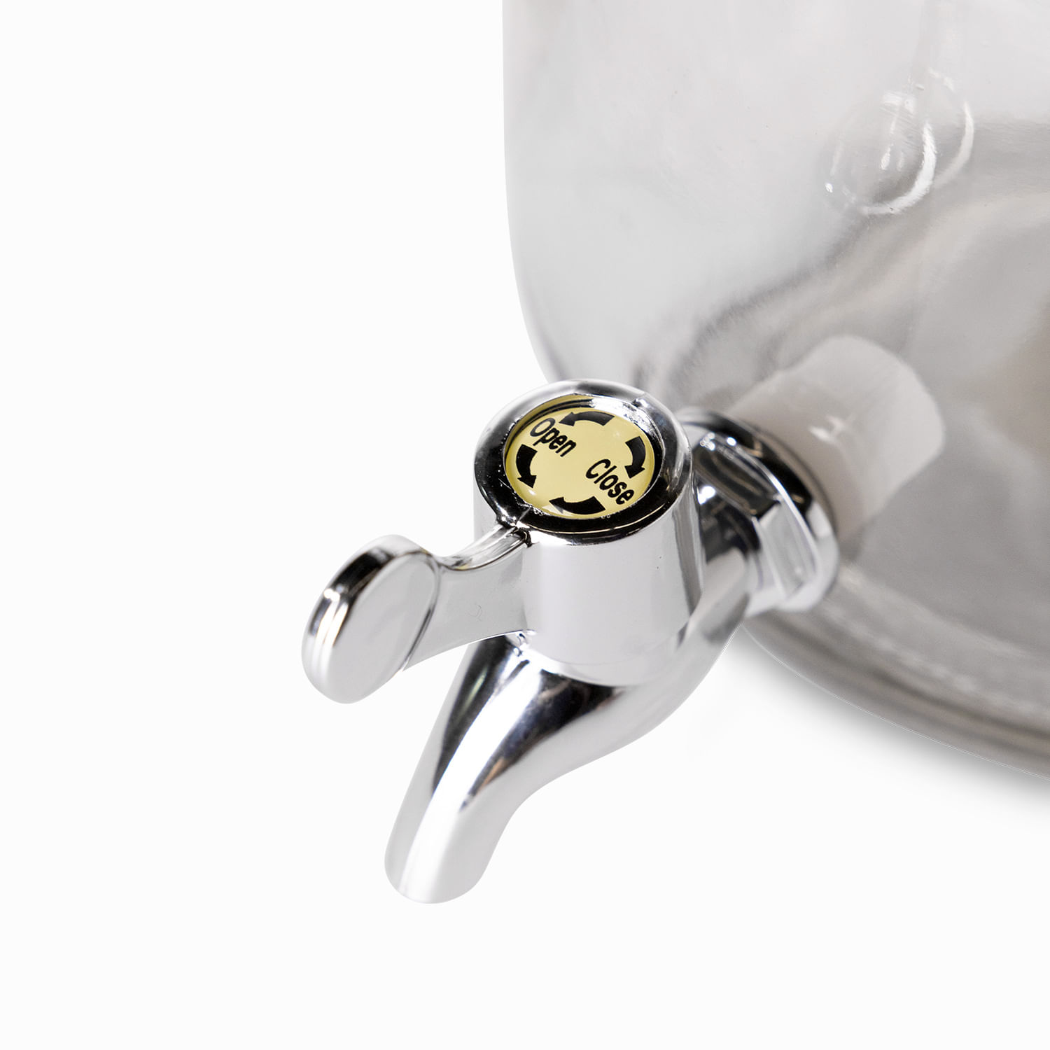 Dispensador de bebidas frías de vidrio, con capacidad para 3000 ml y grifo anti goteo. Su estilo un tanto rustico y campestre, lo ha convertido en uno de los accesorios infaltables en eventos y fiestas al aire libre. Se usa para presentar aguas saborizadas o cocteles con ingredientes naturales en mesas de autoservicio.