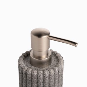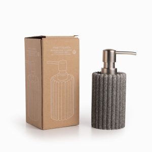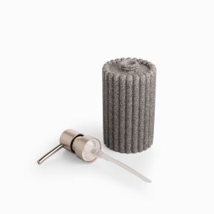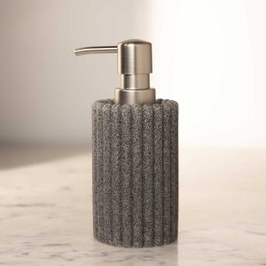 Reemplaza los envases de jabón industriales con una pieza que es un verdadero acento decorativo. Este dispensador de jabón rayas introduce un patrón geométrico y una textura sutil en tu tocador o fregadero. El color gris es un neutro contemporáneo que ofrece una base fácil de coordinar con cualquier azulejo o encimera.