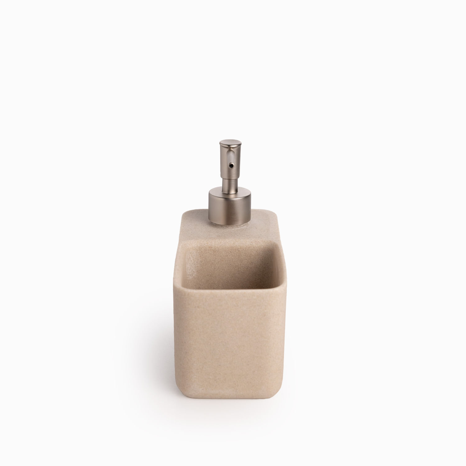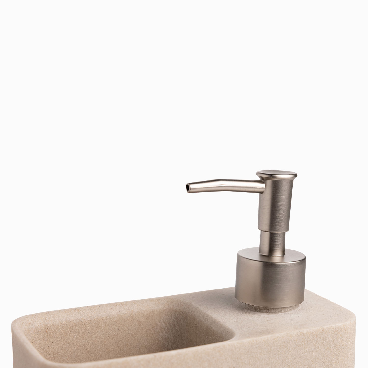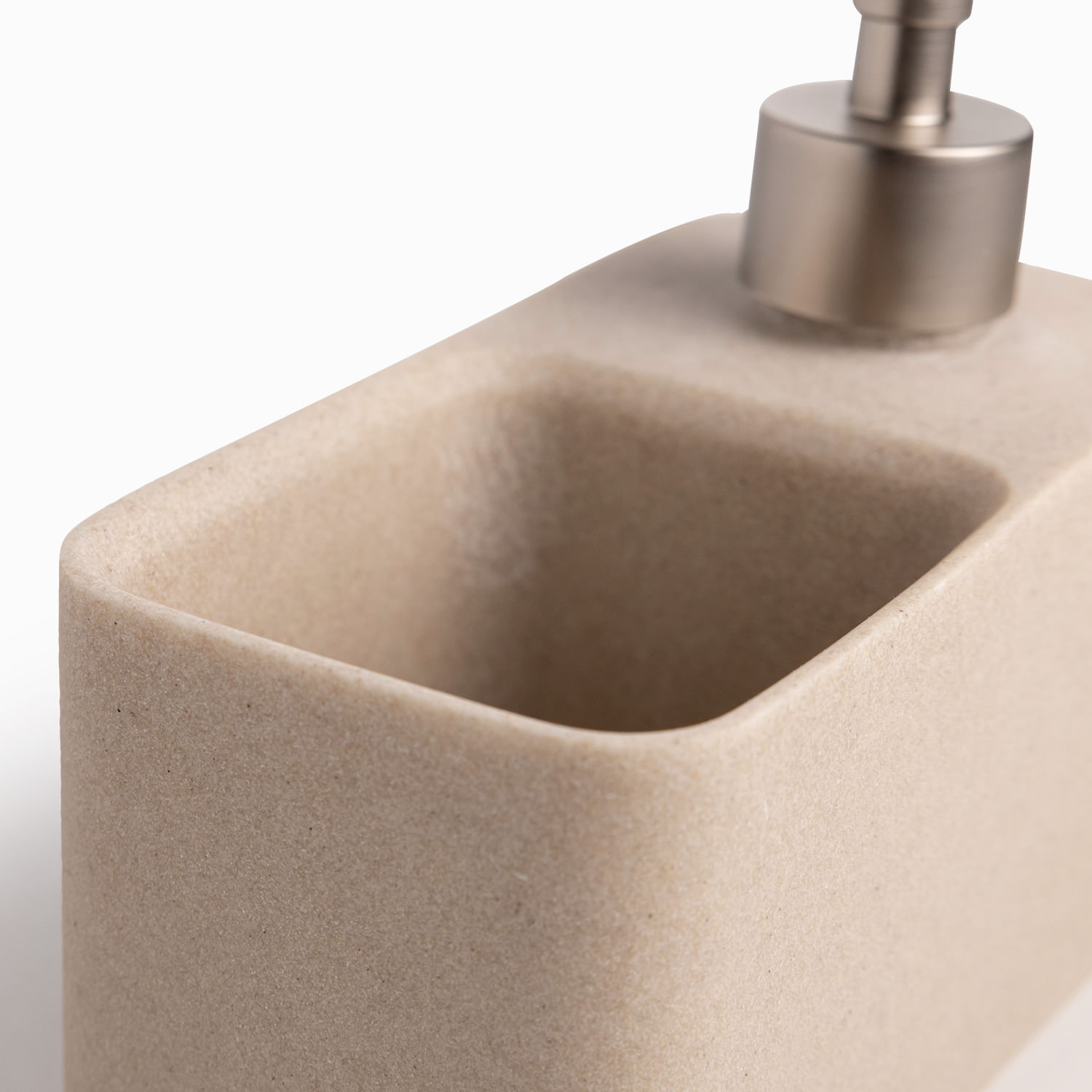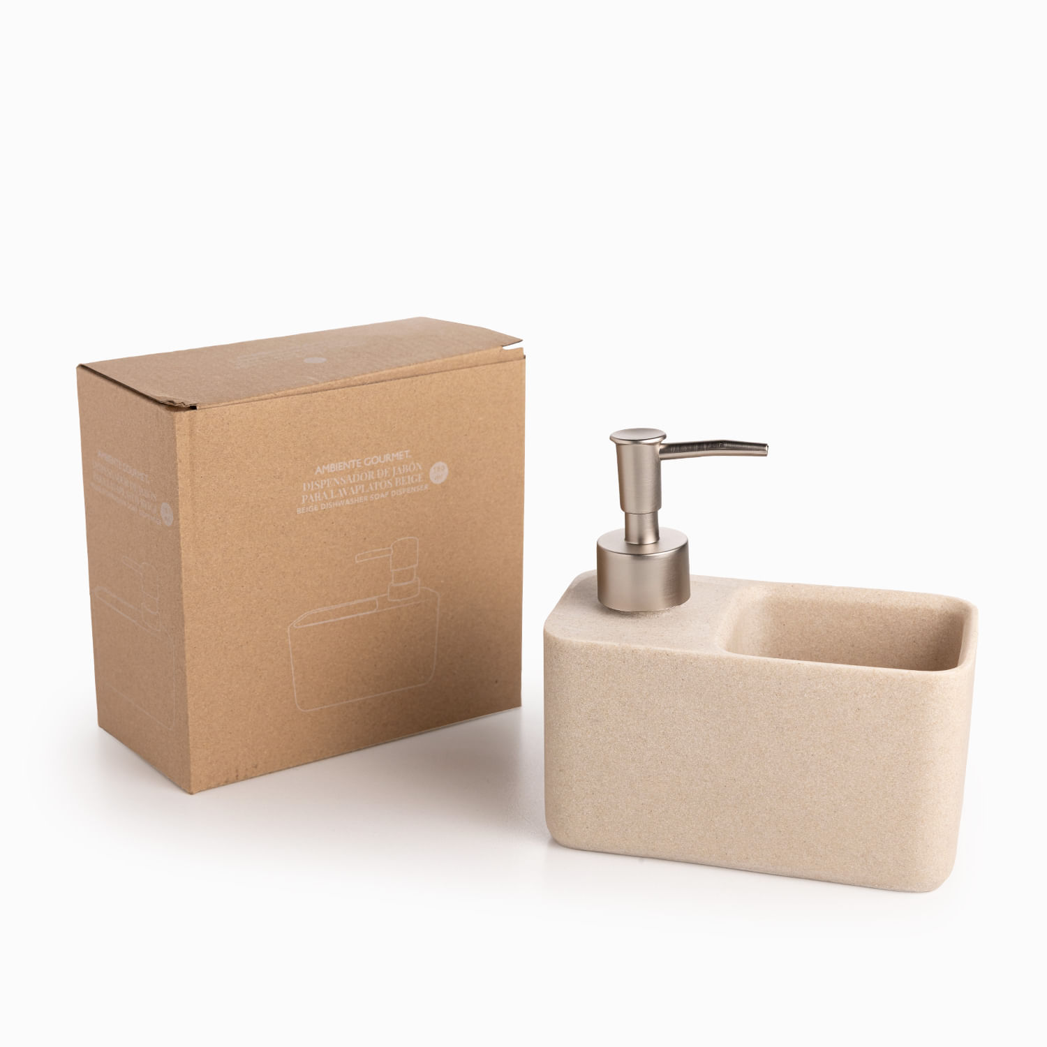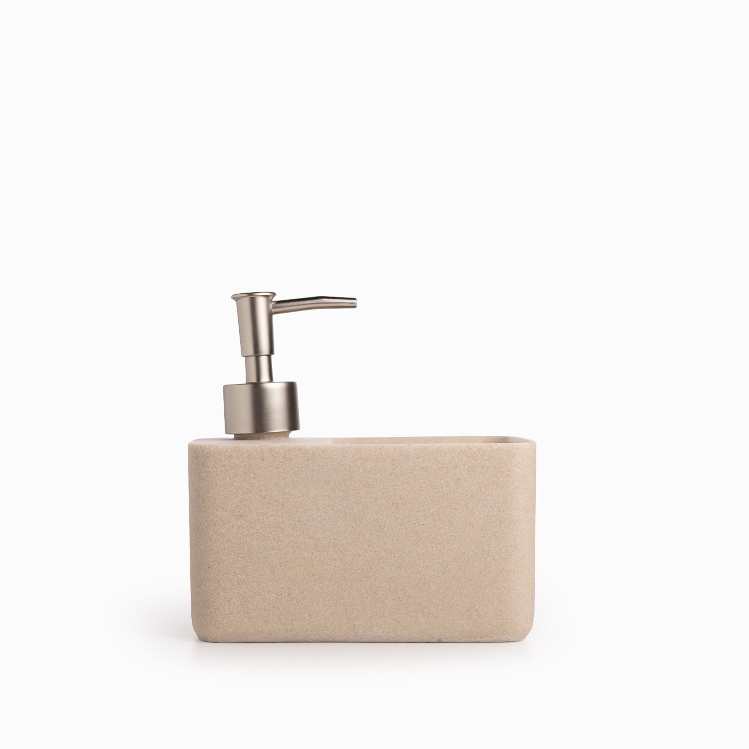 Ideal para colocar junto al fregadero. El dispensador de jabón lavaplatos es la elección del consumidor exigente que busca funcionalidad, diseño de textura y una calidad constructiva que resiste la humedad y el uso constante en la cocina. Transforma tu cocina en un espacio de diseño cohesionado y funcional. Reemplaza las botellas de plástico industriales con una pieza elegante que simula la textura orgánica de la piedra. El suave color beige proporciona una base neutra que complementa cualquier acabado de grifo o encimera.