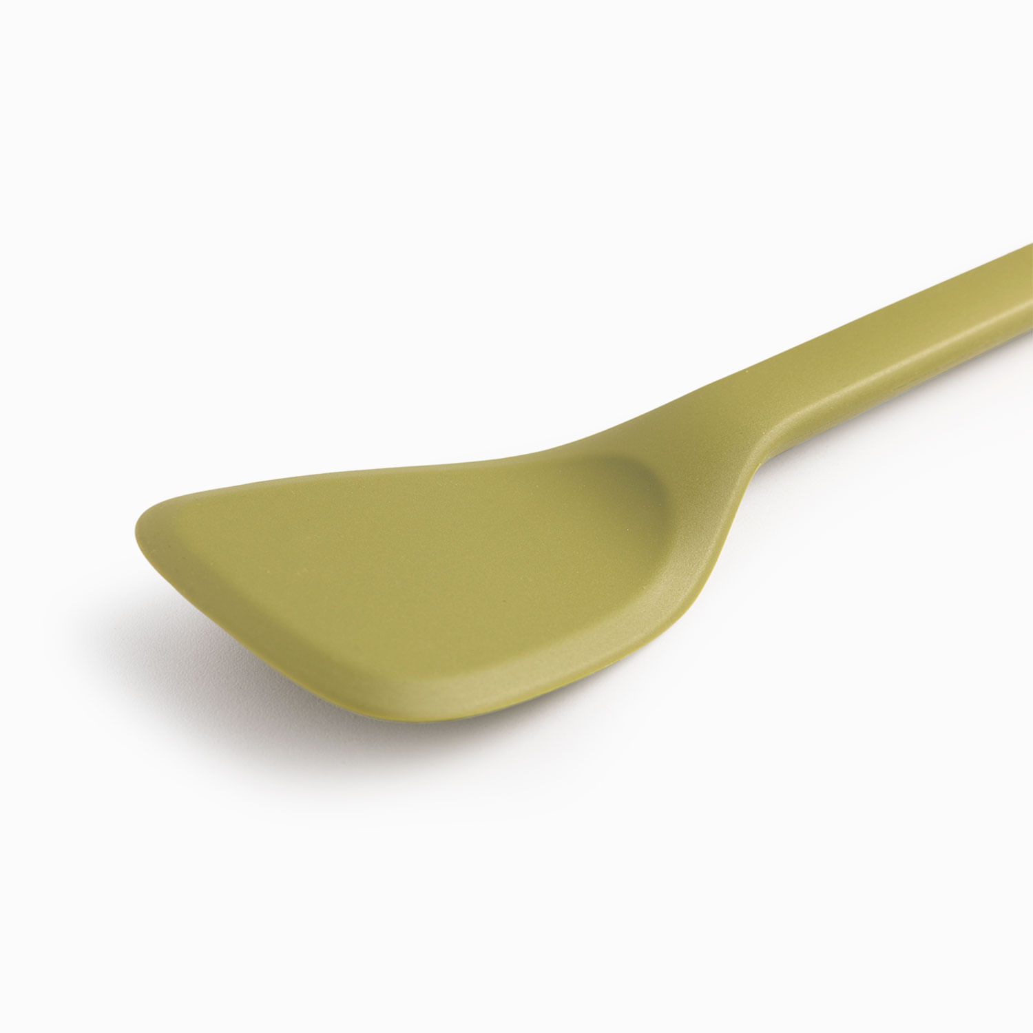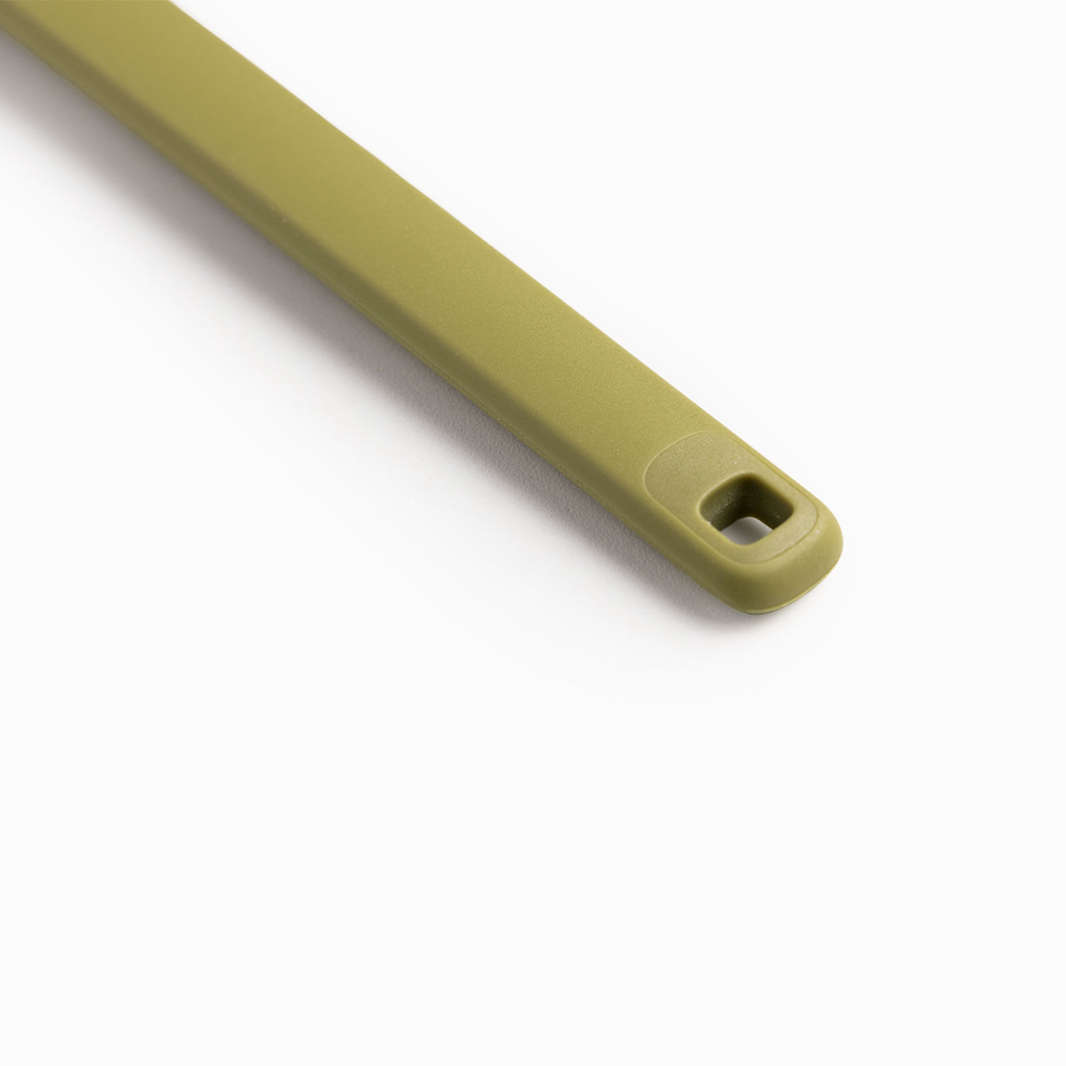 Un utensilio de cocina versátil. Esta espátula de silicona de 31 cm es perfecta para batir, servir y mezclar tus preparaciones. Su color verde de temporada le da un toque moderno, mientras que su resistencia a temperaturas extremas (de -15°C a 150°C) garantiza su durabilidad.