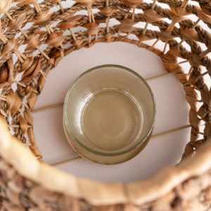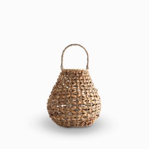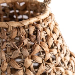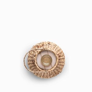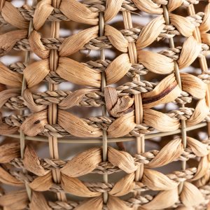 Lo necesitas para un ambiente íntimo y sereno, porque permite que la luz se filtre a través de un hermoso trenzado de fibras naturales. Su mezcla de jacinto de agua, hierba marina y ratán ofrece una riqueza textural que añade profundidad a tu decoración. Extremadamente ligero y portátil, es ideal para decorar repisas, mesas auxiliares o rincones.