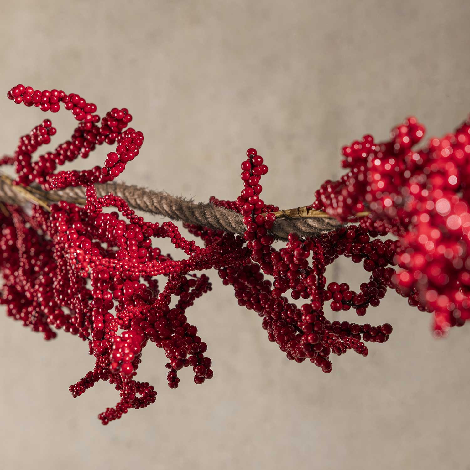 Guirnalda navideña en poliéster y plástico de 160 cm color rojo, personaliza tus espacios y dale un giro a tu decoración con pequeños detalles.
