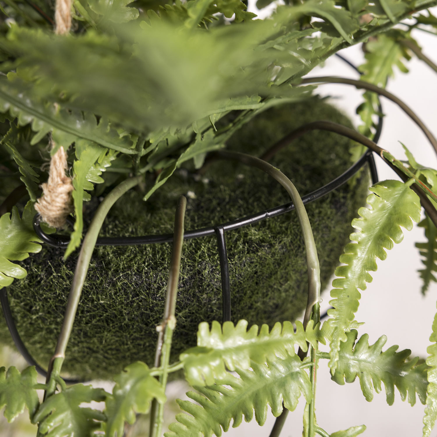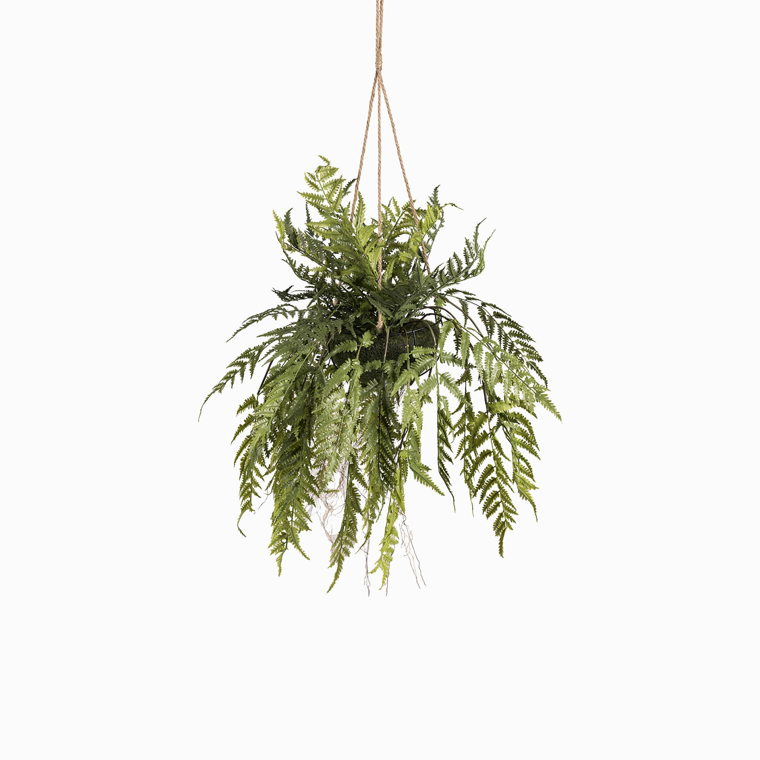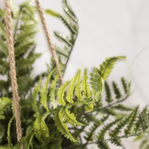 Helecho colgante en polietileno de 91cm, es una planta artificial ideal para decorar interiores. Es fácil de limpiar, no necesita cuidados extras. Es ideal para arreglos tipo tapete de plantas, sirve de follaje en diferentes espacios.