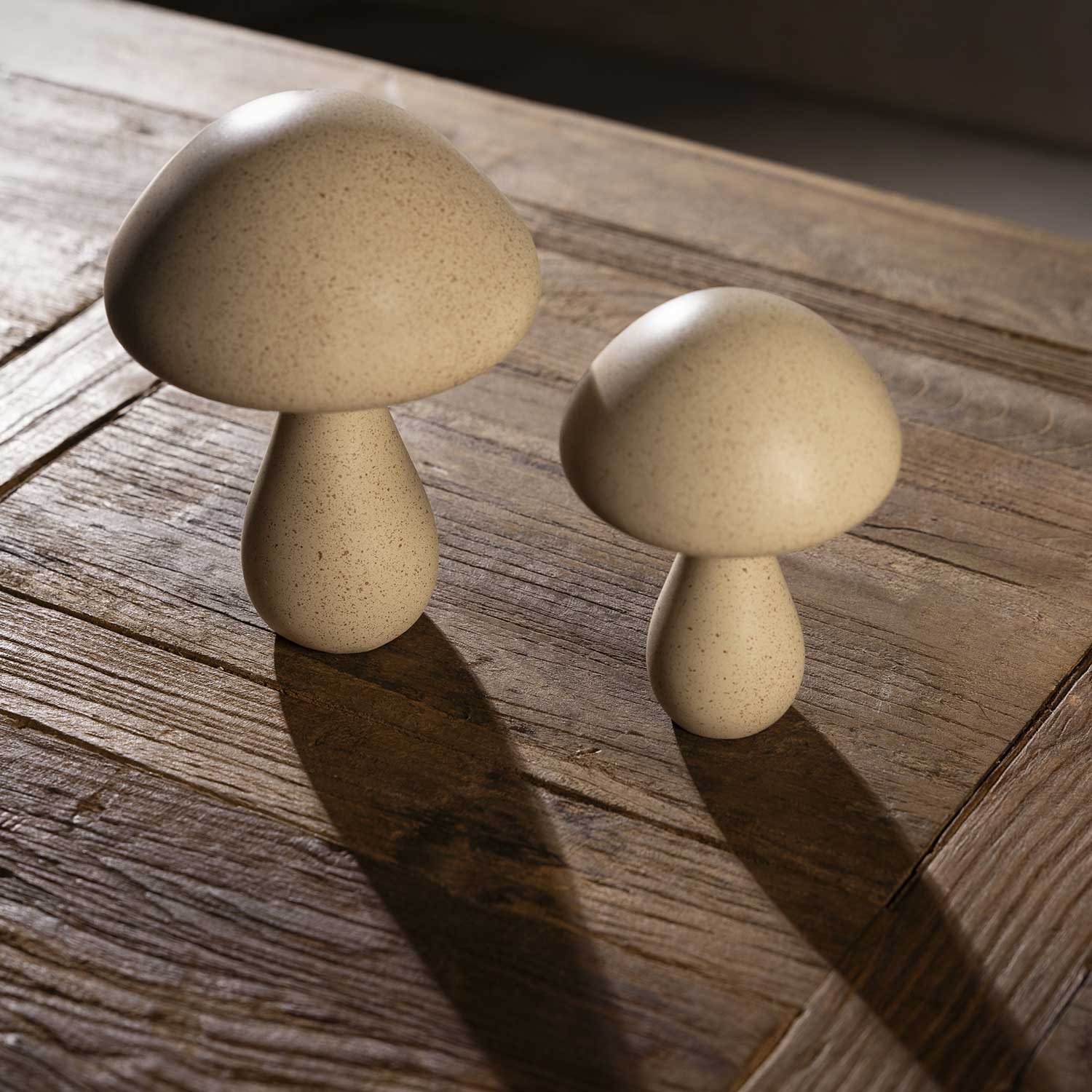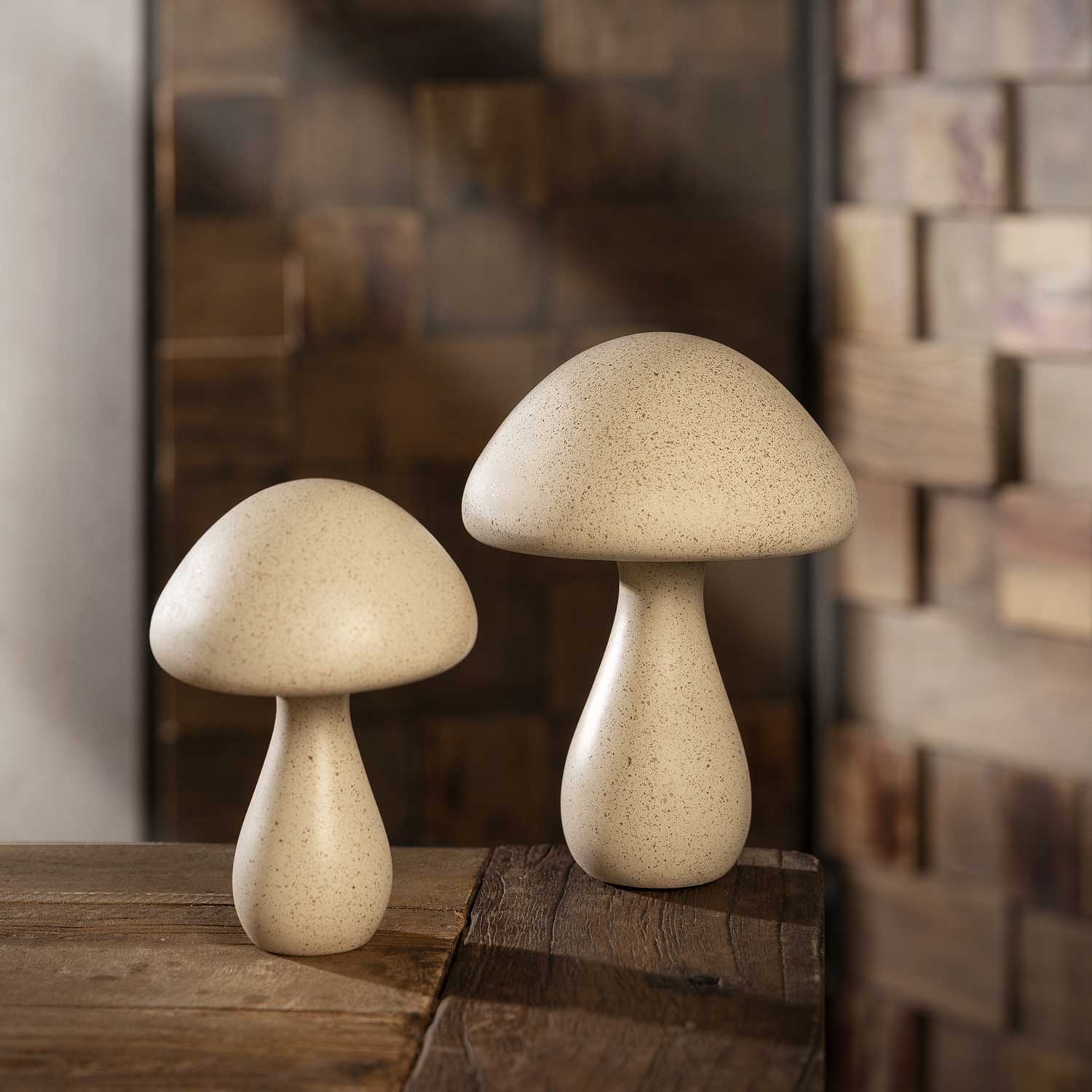 Hongo en resina y polvo de cal color beige, su diseño moderno y disruptivo le aporta personalidad al espacio, puede usarse como centro de mesa para sala o estudio.