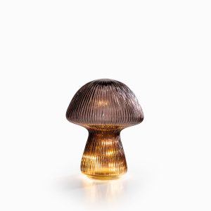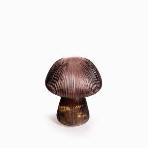 Hongo en vidrio color café, su diseño moderno y disruptivo le aporta personalidad al espacio, puede usarse como centro de mesa para sala o estudio. Hace parte de nuestro nuevo portafolio de decoración para Navidad, sus luces están diseñadas para tener una larga vida útil.