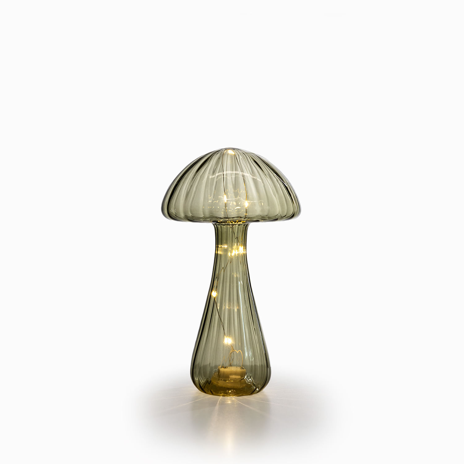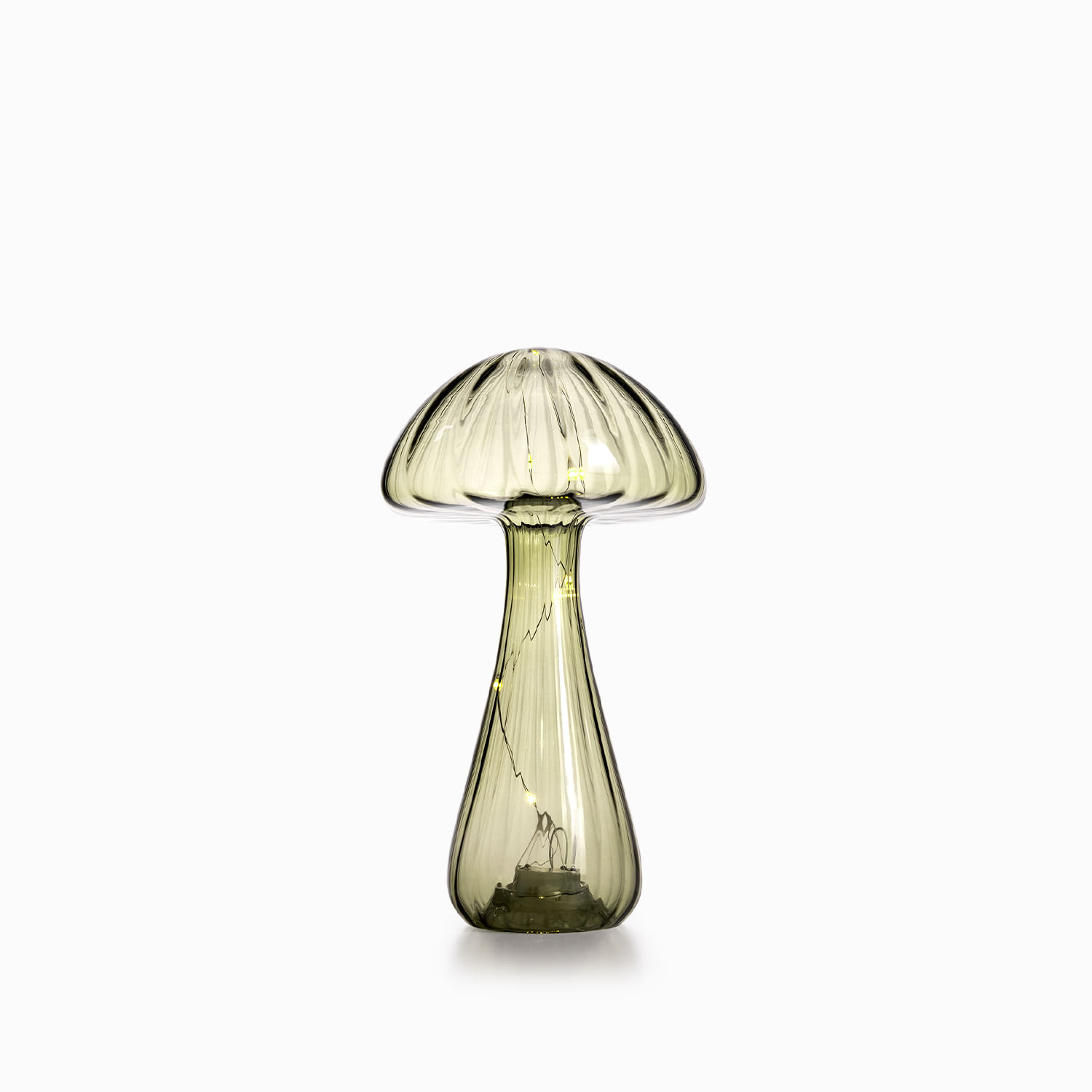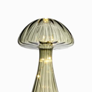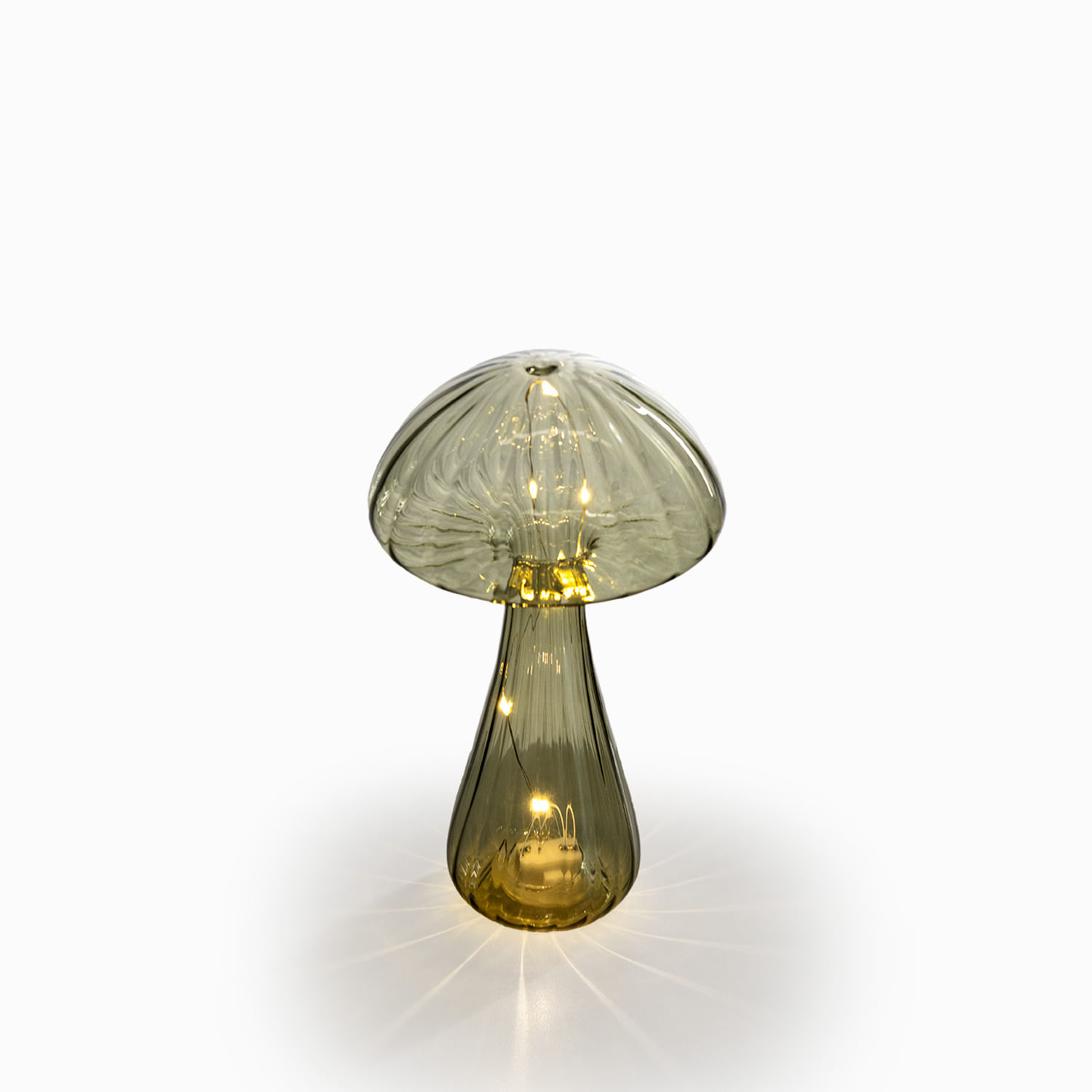 Hongo en vidrio color verde, su diseño moderno y disruptivo le aporta personalidad al espacio, puede usarse como centro de mesa para sala o estudio. Hace parte de nuestro nuevo portafolio de decoración para Navidad, sus luces están diseñadas para tener una larga vida útil.