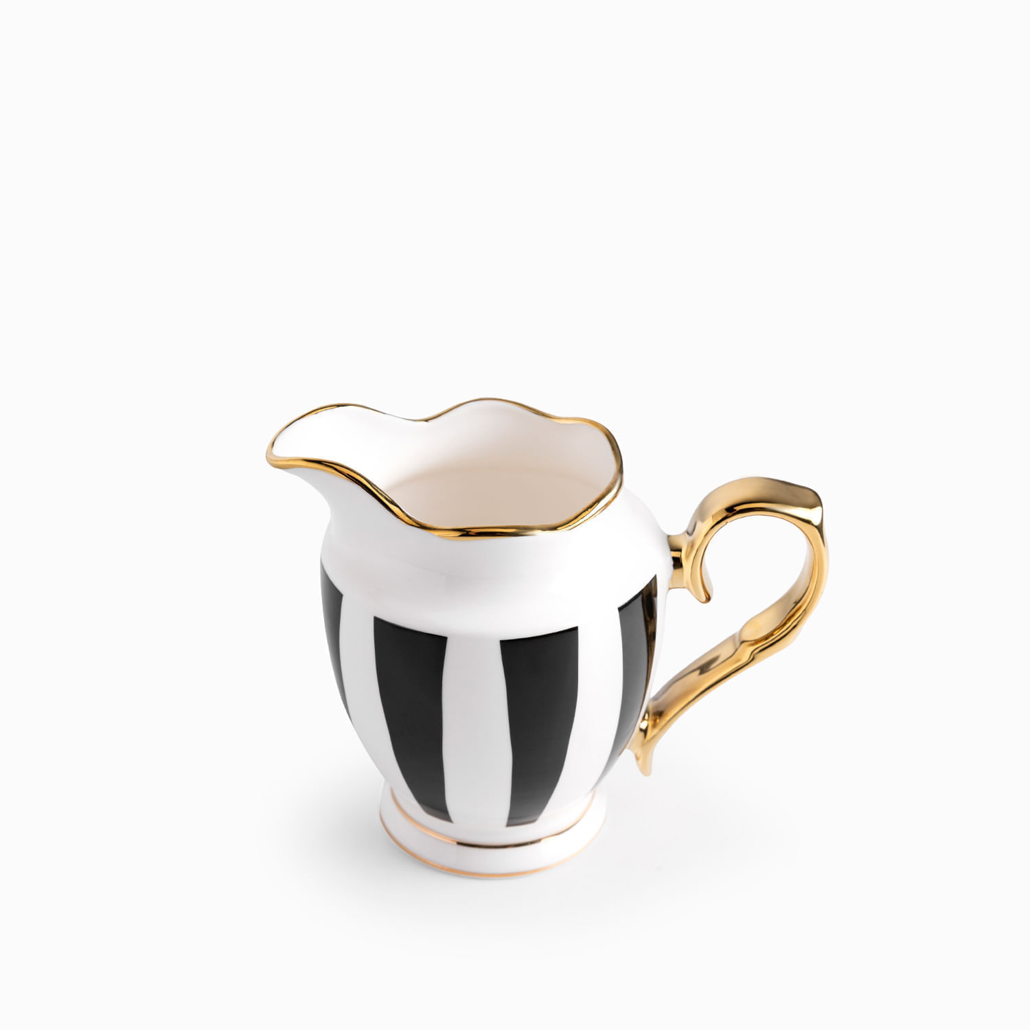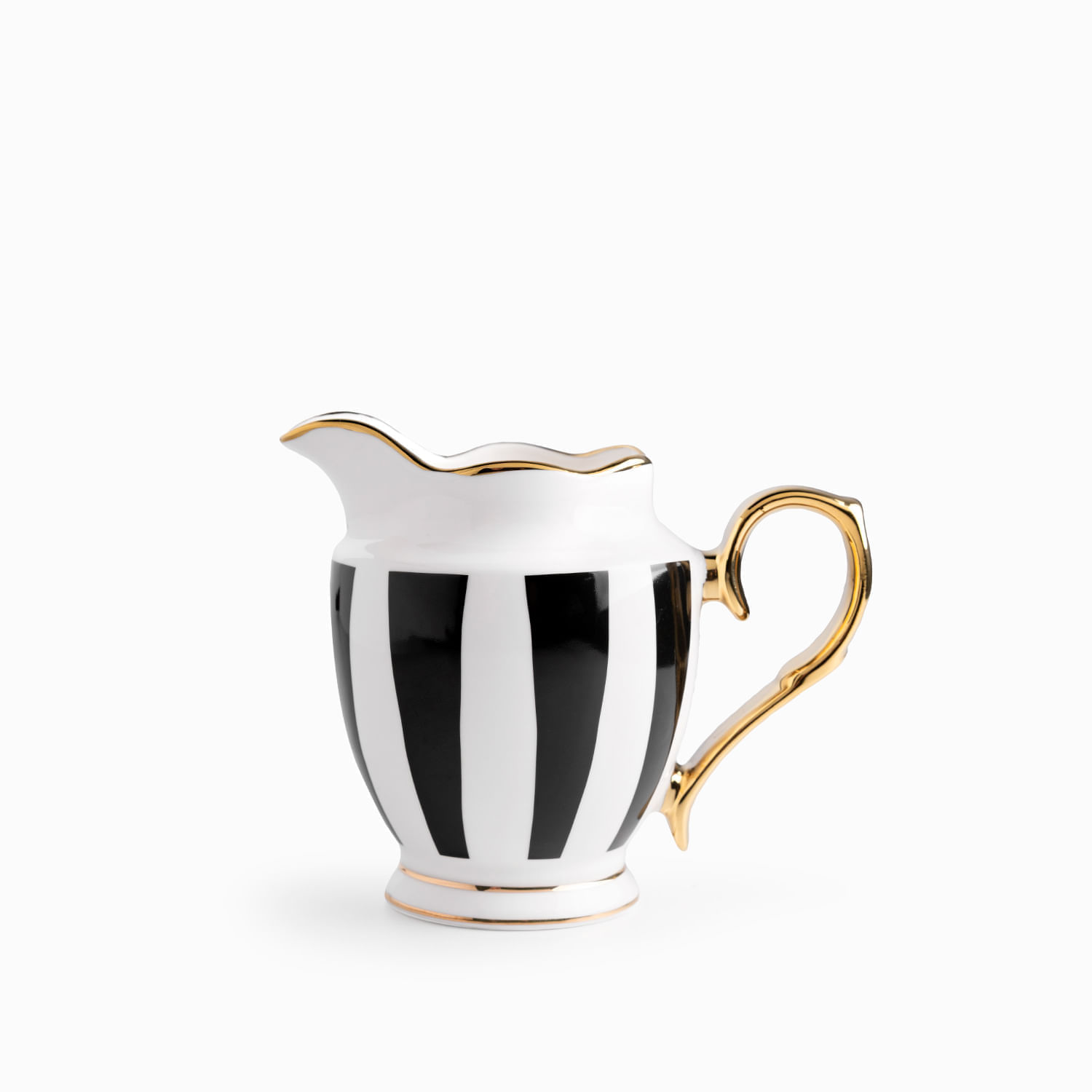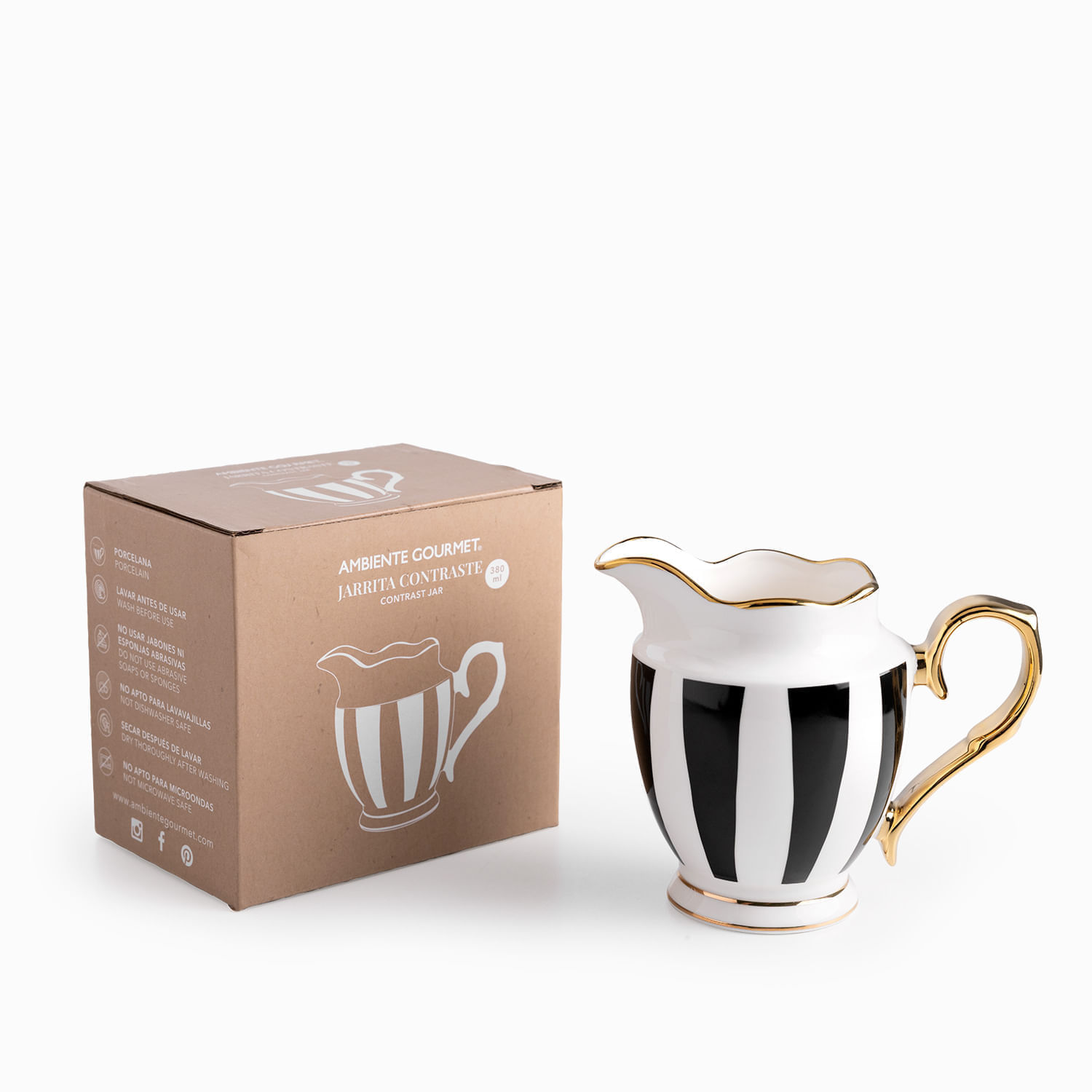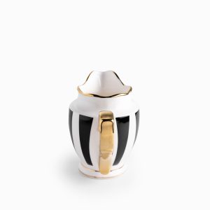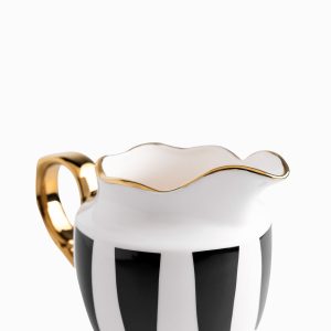 Diseño ergonómico para el servicio impecable de tus bebidas y salsas, la jarra Contraste es fabricada con la resistente porcelana New Bone China, esta pieza esencial utiliza el icónico contraste blanco y negro para crear un accesorio de mesa elegante y funcional, ideal para servir leche, crema, jarabes o aderezos, capacidad para 380ml