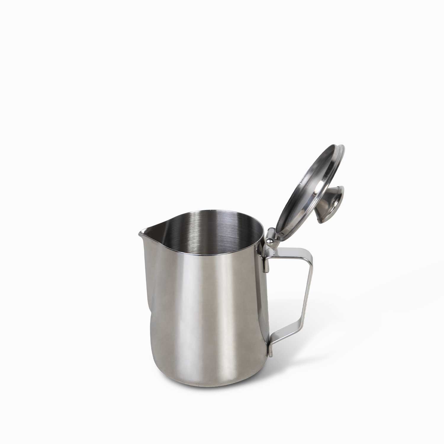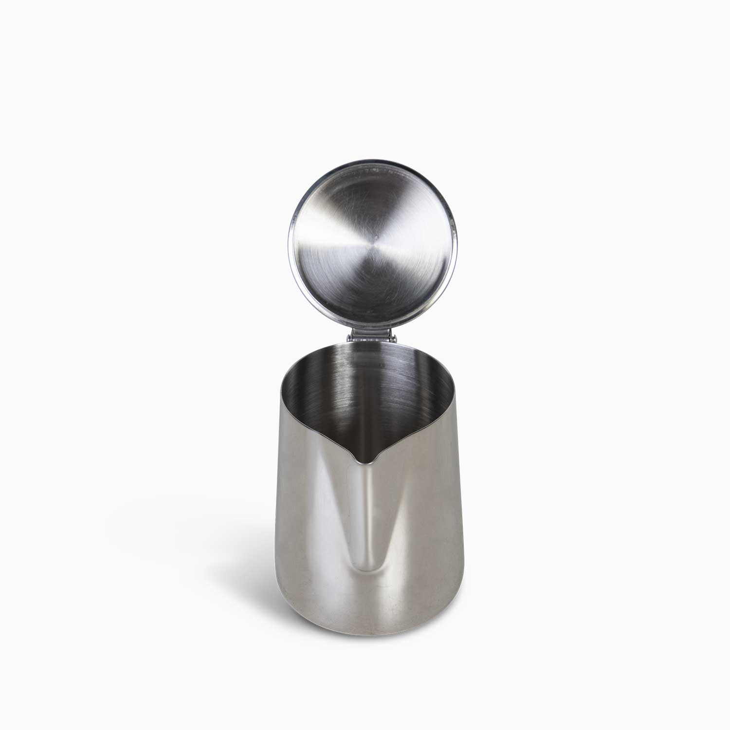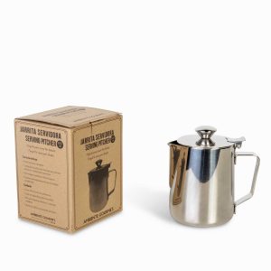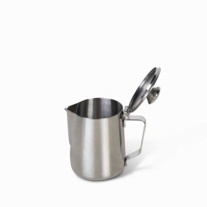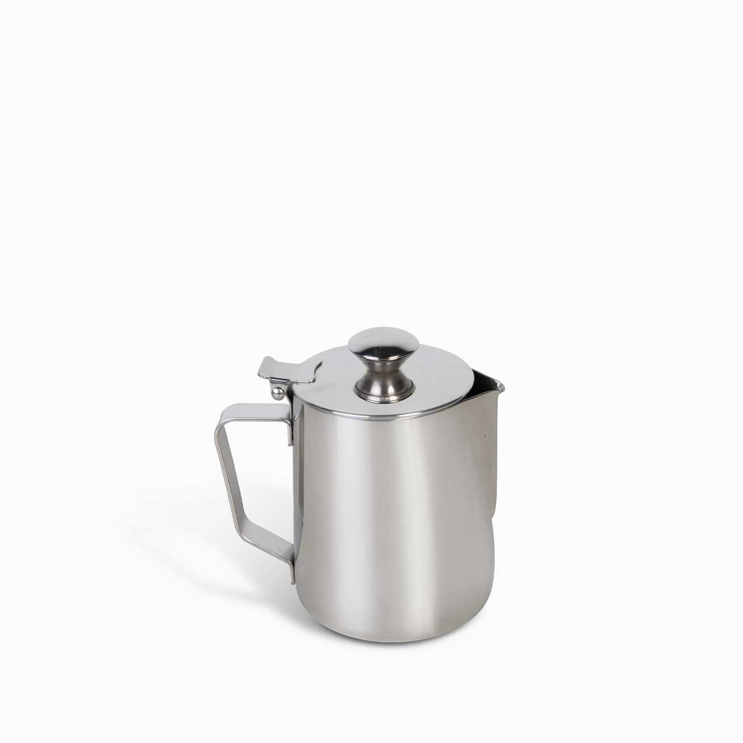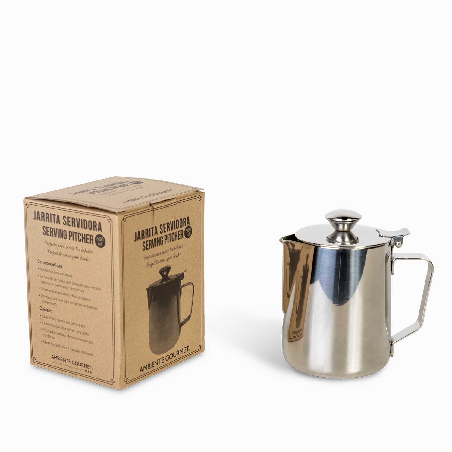 Jarra en acero inoxidable capacidad de 600 ml, especial para servir leche, cremas, salsas o aderezos, su boquilla evita goteos, con diseño moderno.