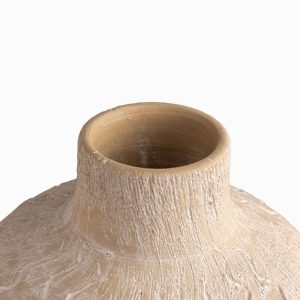 Fabricado íntegramente en cerámica, ofreciendo una base sólida y una durabilidad excepcional para su uso decorativo. El jarrón Tzoma destaca por su silueta de ánfora moderna, con una altura de 24 cm y un diámetro de 18 cm. La combinación de su cuello corto y su base ancha lo convierte en un elemento decorativo con gran peso visual que ayuda a anclar la decoración de mesas de centro o consolas.