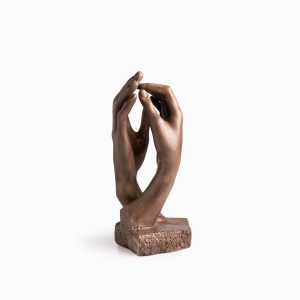 Manos decorativas entrelazadas de resina y cal en color café, objeto decorativo para sala o estudio, personaliza cada espacio con pequeños detalles que marcan la diferencia.