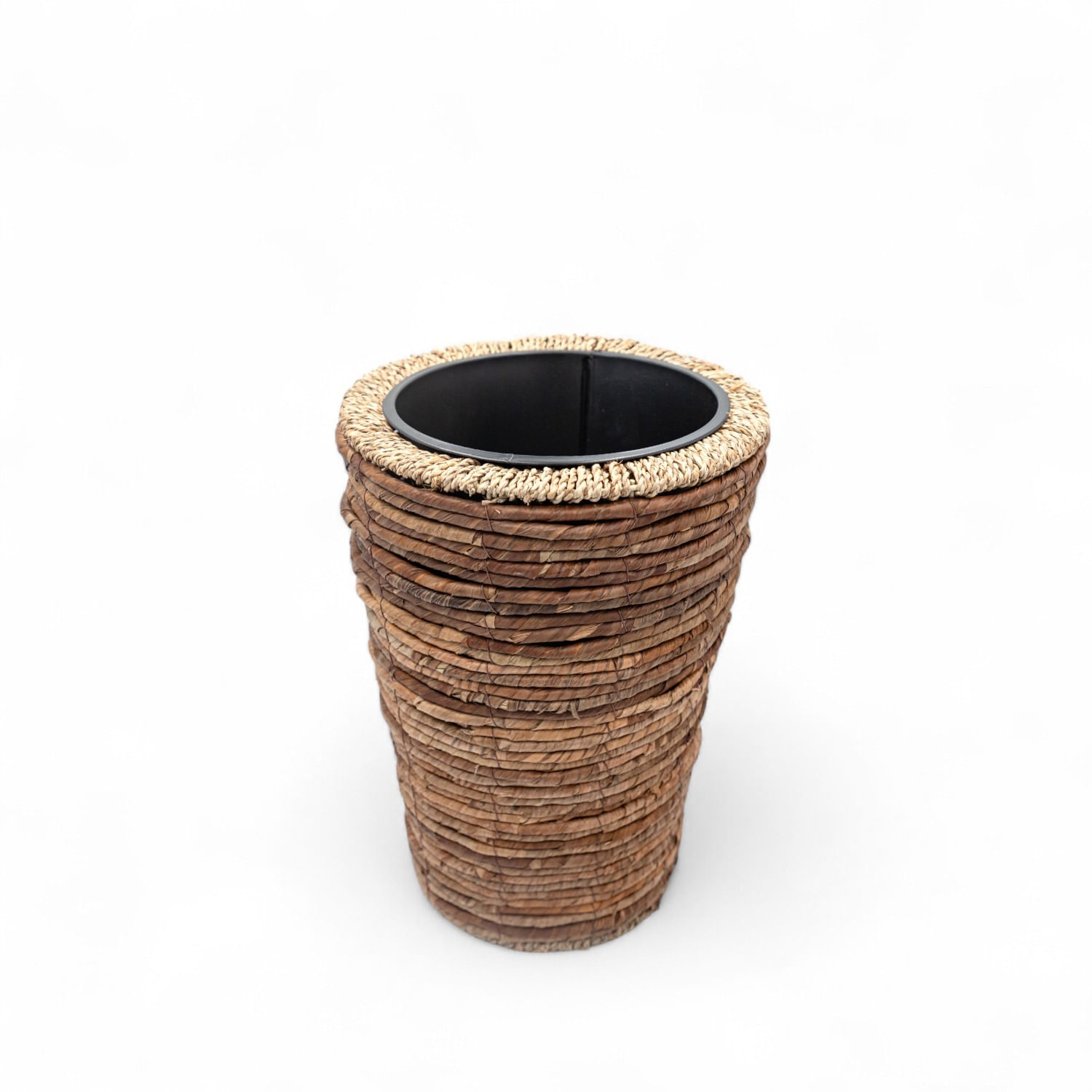 Matera en fibras naturales color natural de la colección Nikko mediana, objeto decorativo para plantas decorativas que refresca el look de los espacios y genera un gran cambio visual.