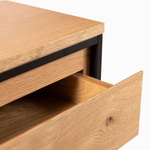 Mesa auxiliar de la colección Berlín, ideal como mesa lateral. Fabricada en madera MDF y chapilla de roble, presenta un acabado natural y original que resalta la calidad de sus materiales. Es perfecta para complementar tu sala de estar y oficina.