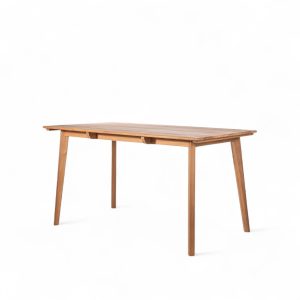 Mesa de comedor de 6 puestos en madera de la colección Alba, es un mueble pensado para apartamentos que aprovecha cada espacio, es fácil de mover y su estilo minimalista convive con la decoración.