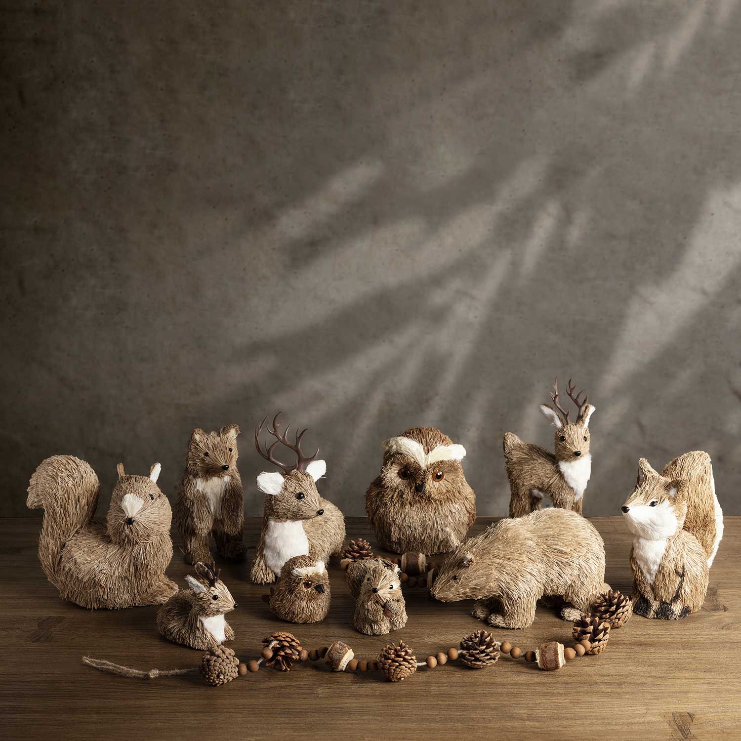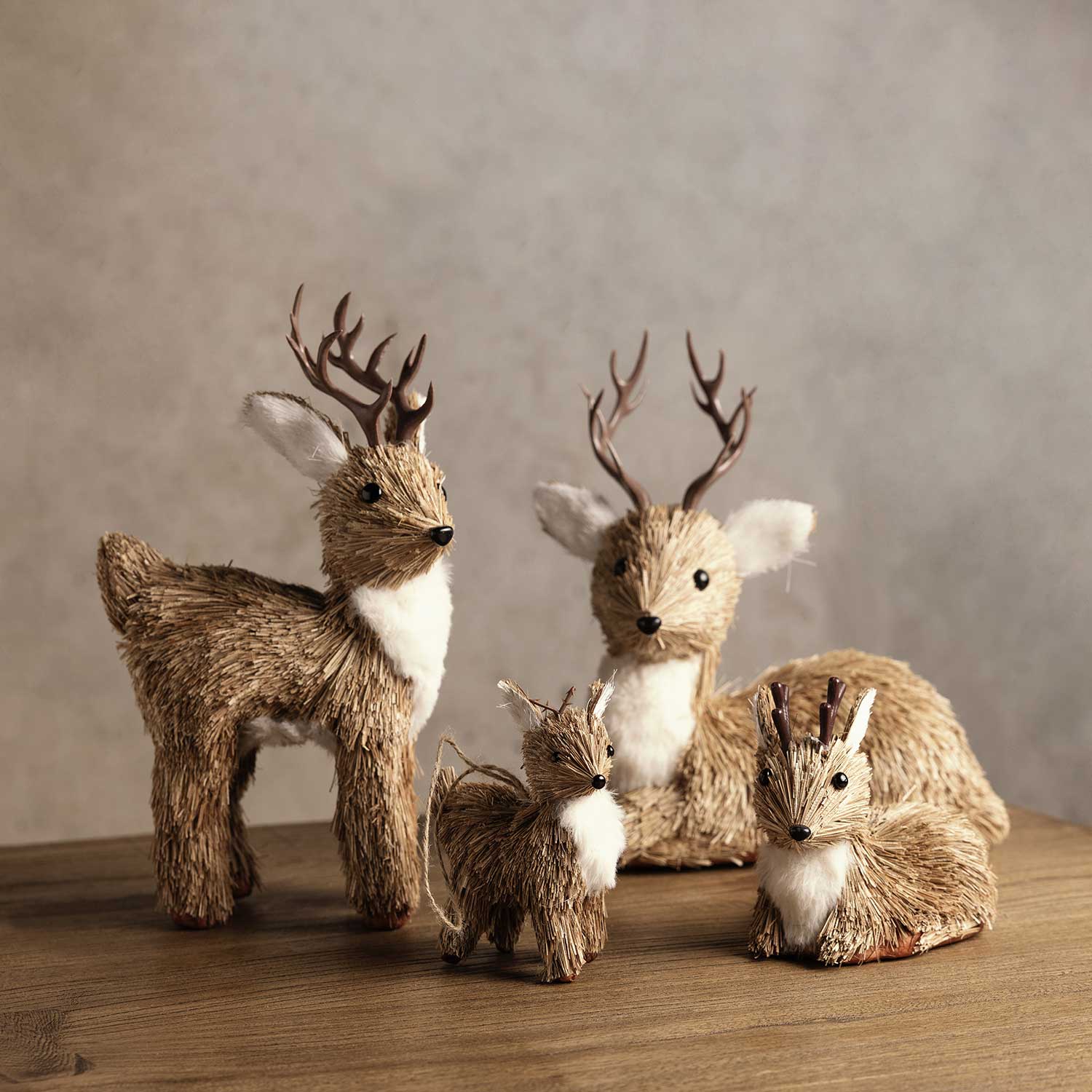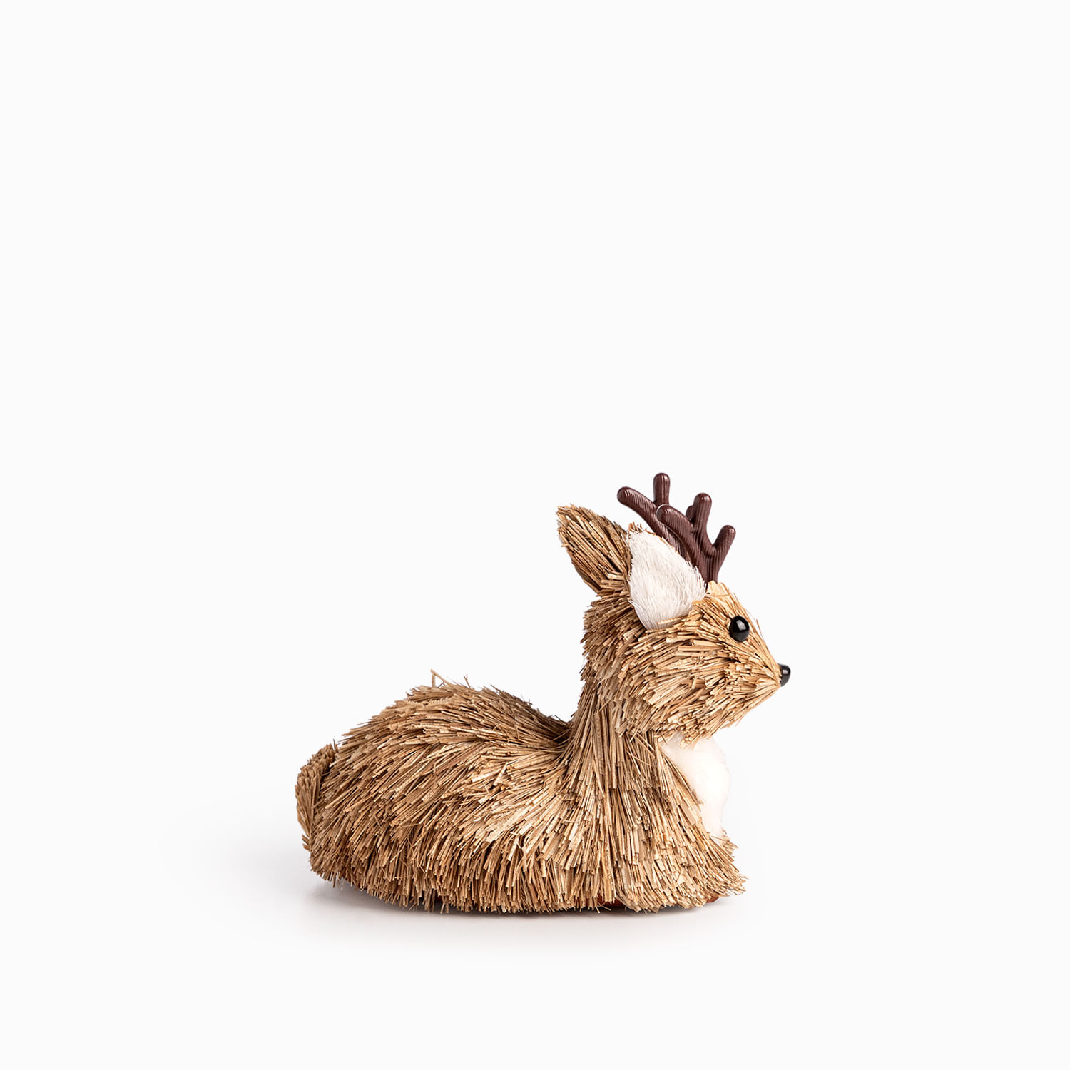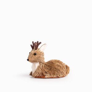 Reno sentado de 11 cm de la colección de Navidad, hecho de yute y poliespuma. Es el elemento perfecto para tus celebraciones de fin de año, ya que su diseño natural complementa tus espacios y se puede combinar con otras piezas de la colección.