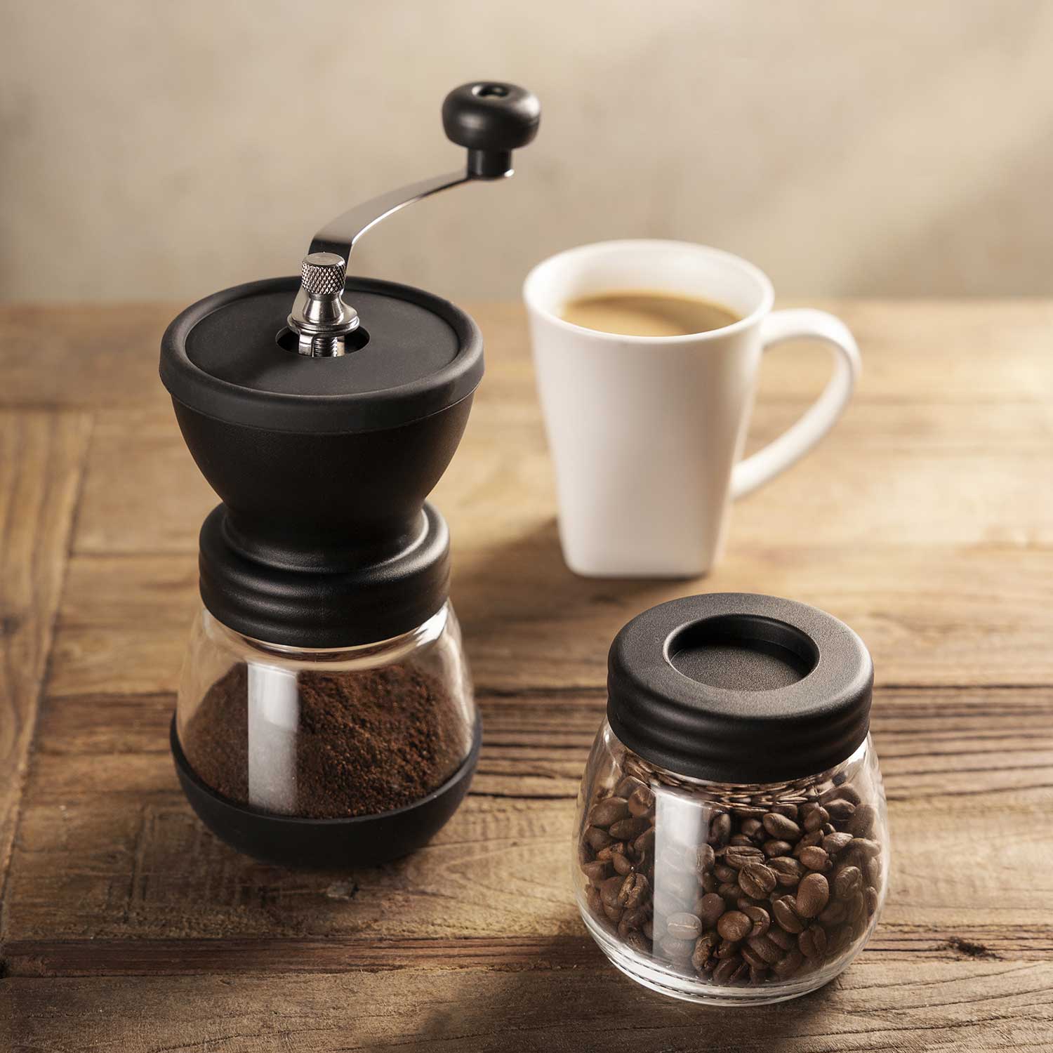 Molino de café manual con recipiente set x2