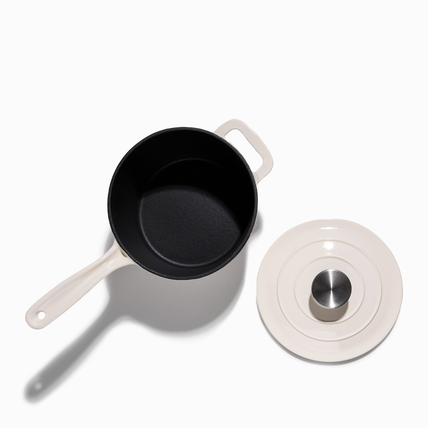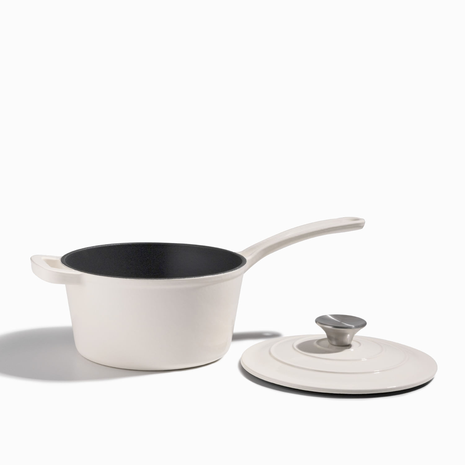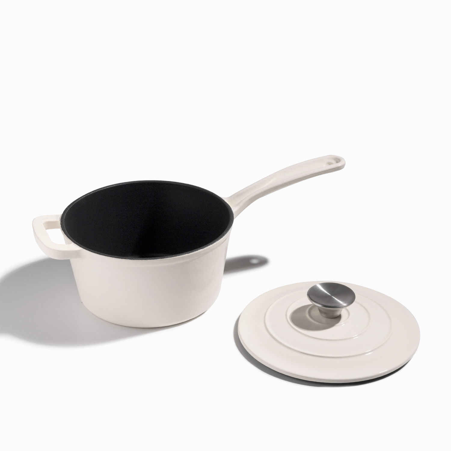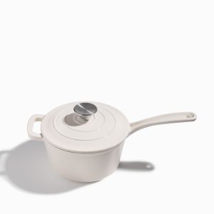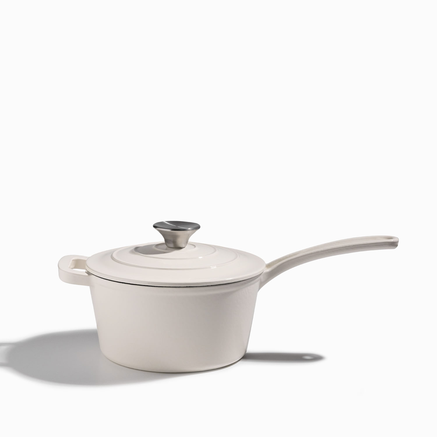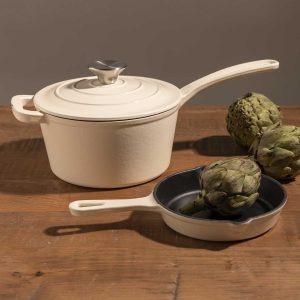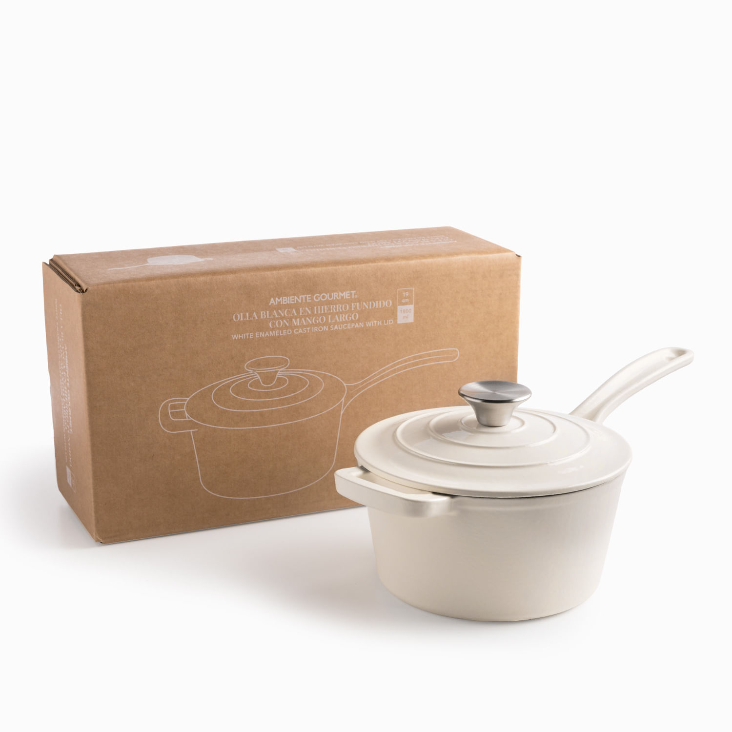 Olla blanca en hierro fundido con mango largo 19cm