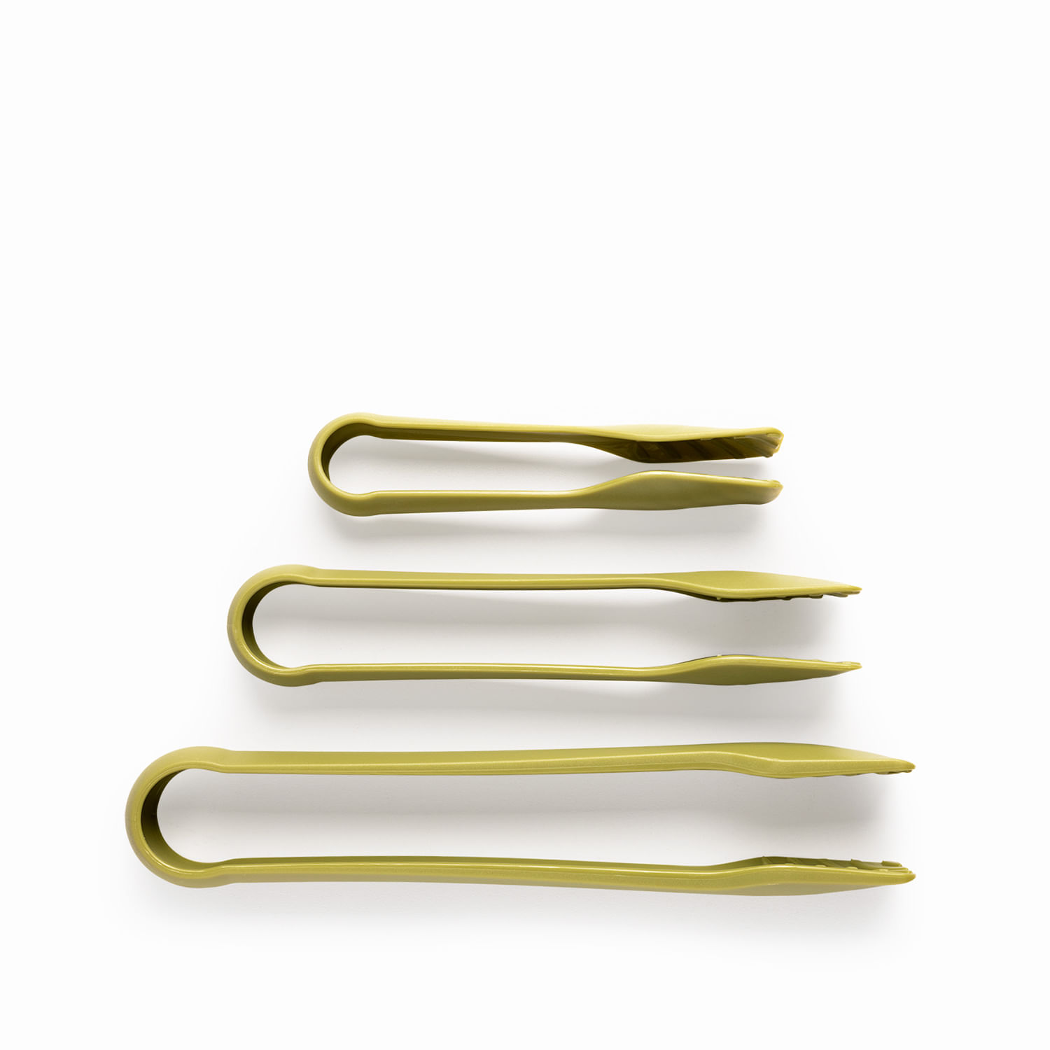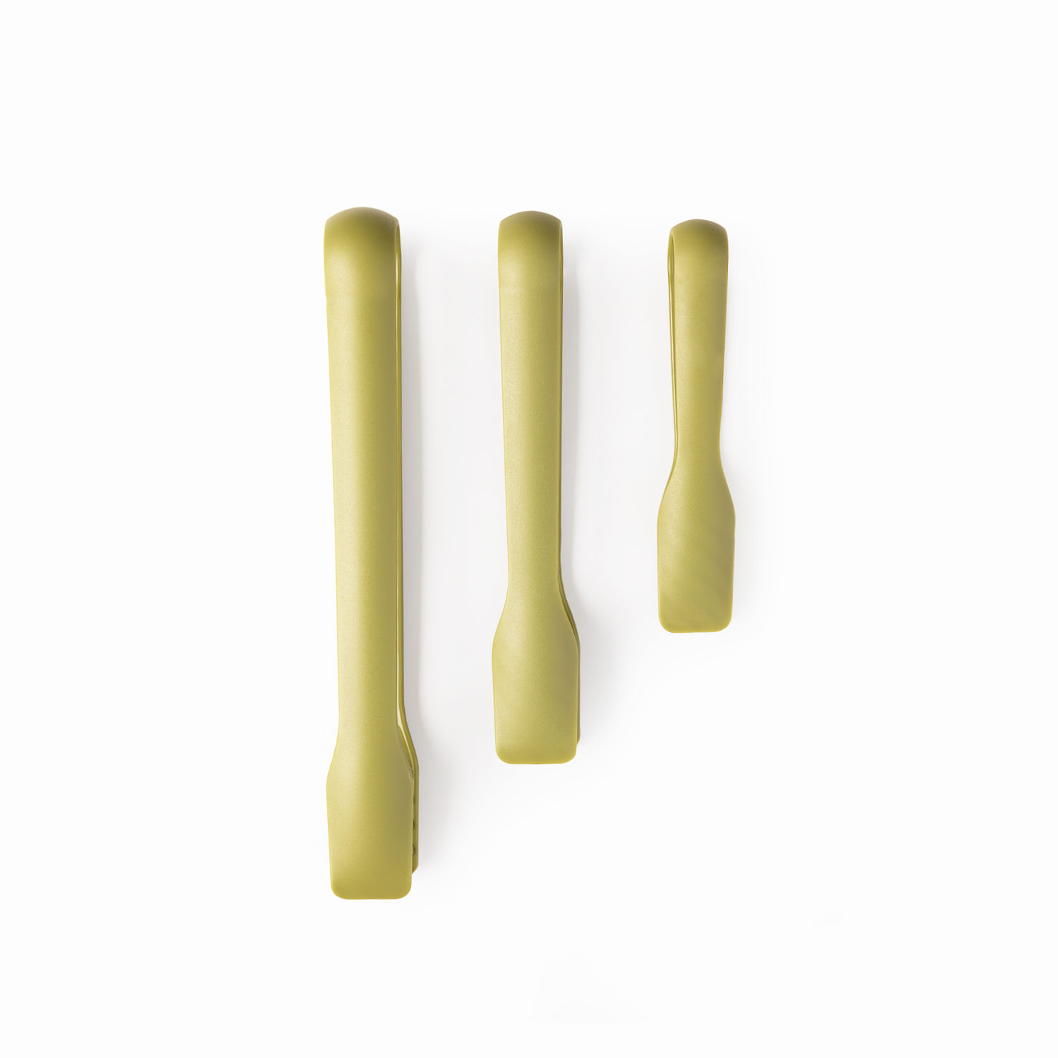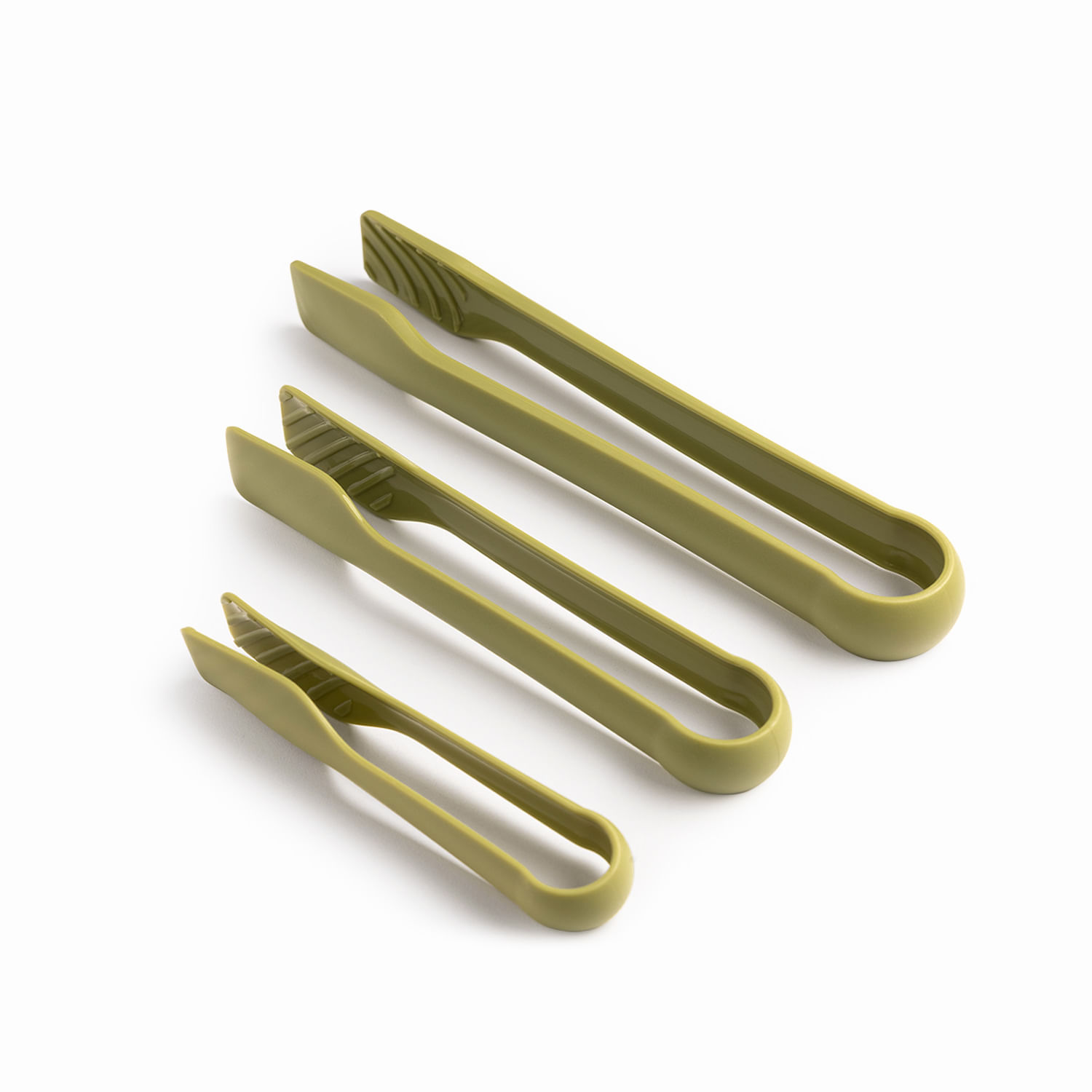 Set de pinzas de polipropileno con tres tamaños diferentes, ideal para usar en la cocina. Son muy útiles para servir una variedad de alimentos, desde tostadas y charcutería hasta galletas y pastelitos.