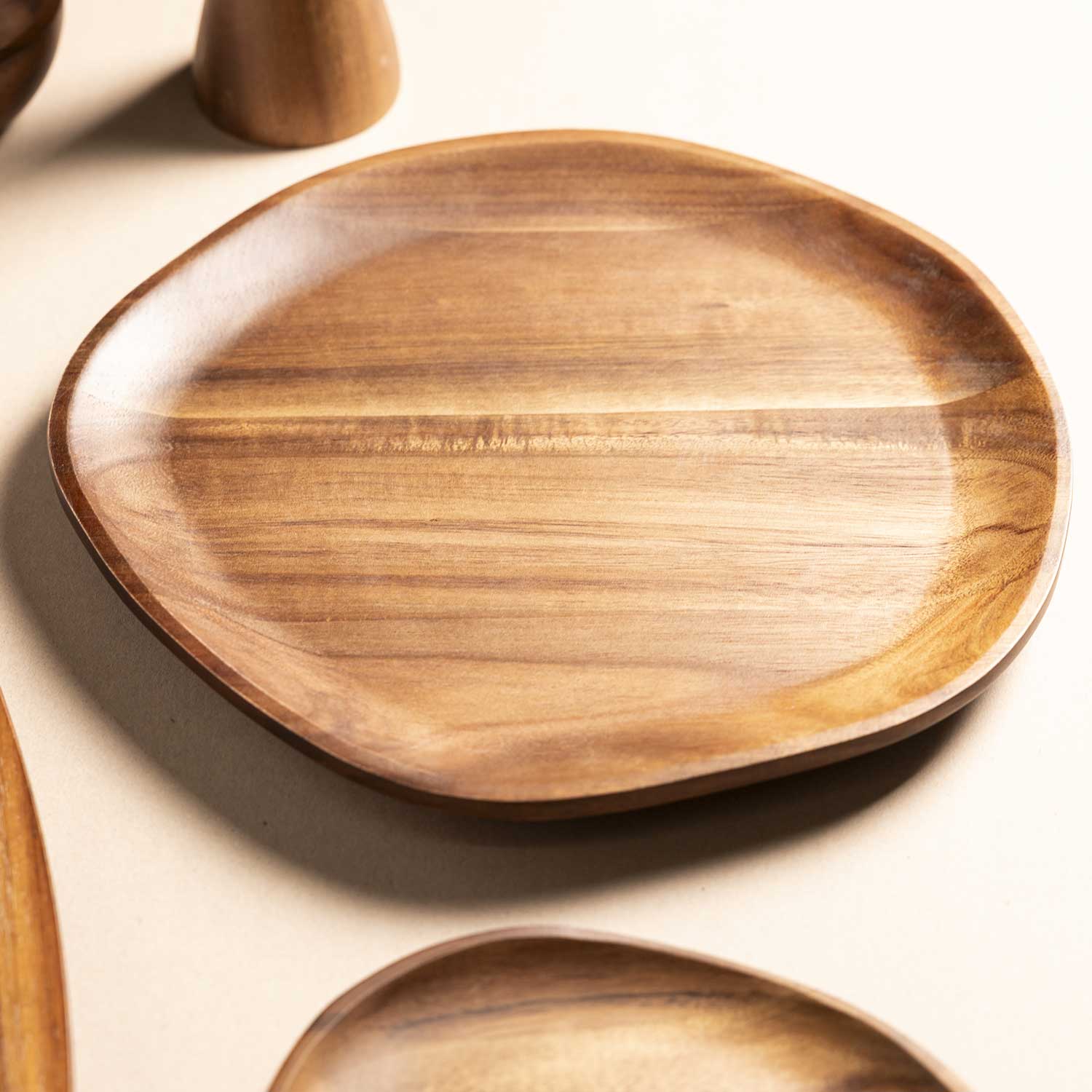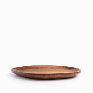 Platos en acacia de 31cm perfectos para servir alimentos secos. No apto para lavavajillas, horno y microondas. Lavar con jabón y esponja suave. Las piezas pueden tener diferencias ya que son hechas a mano.