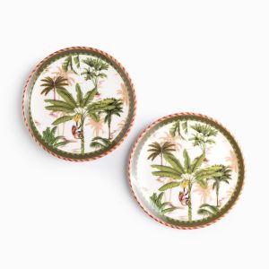 Disfruta la comida al aire libre con una vajilla en melamina ideal para el exterior porque no se rompe, el plato mediano sirve para pequeñas porciones de aperitivos o entradas, hace parte de la colección Palmeras. Su diseño es inspirado en el paisaje costero con elementos tropicales.