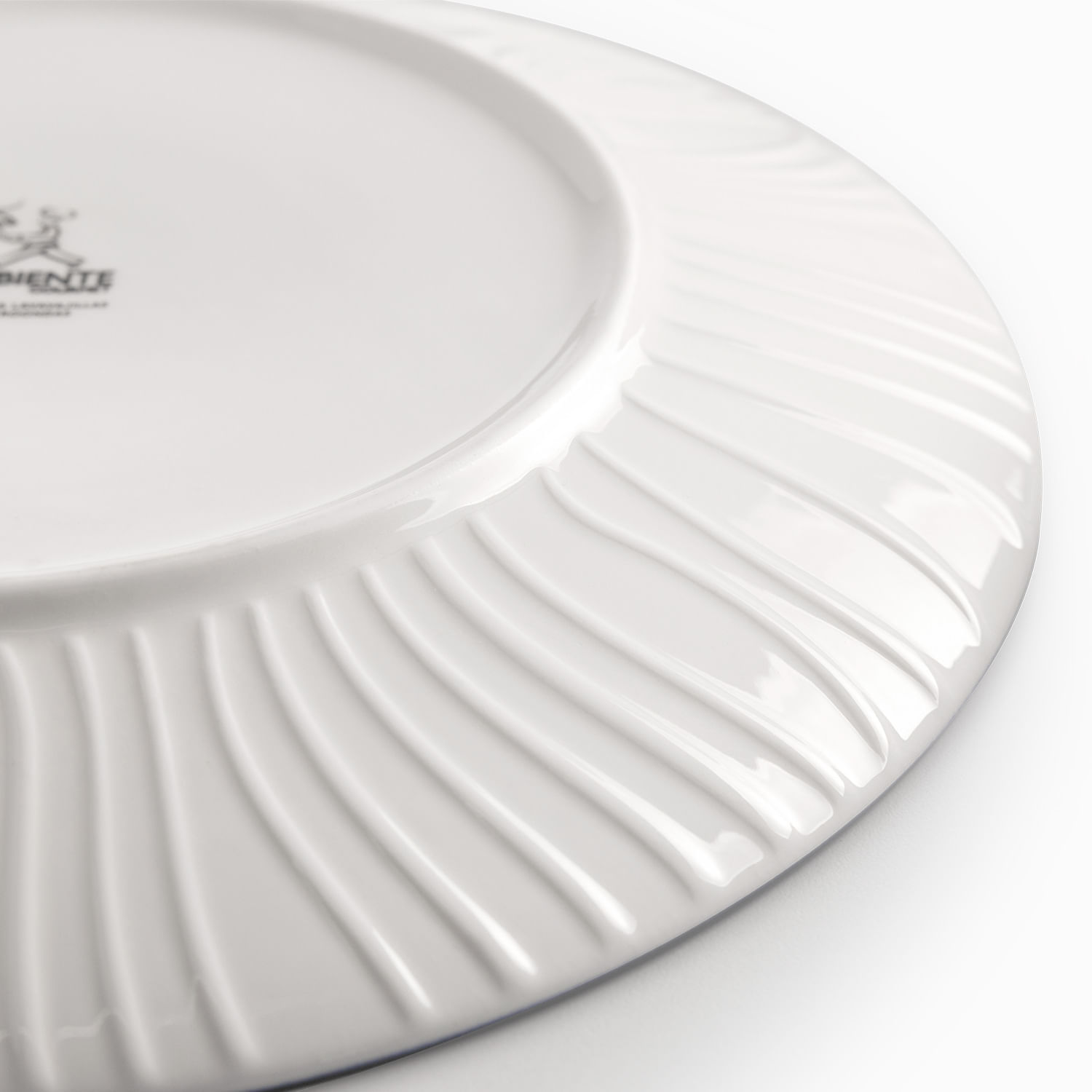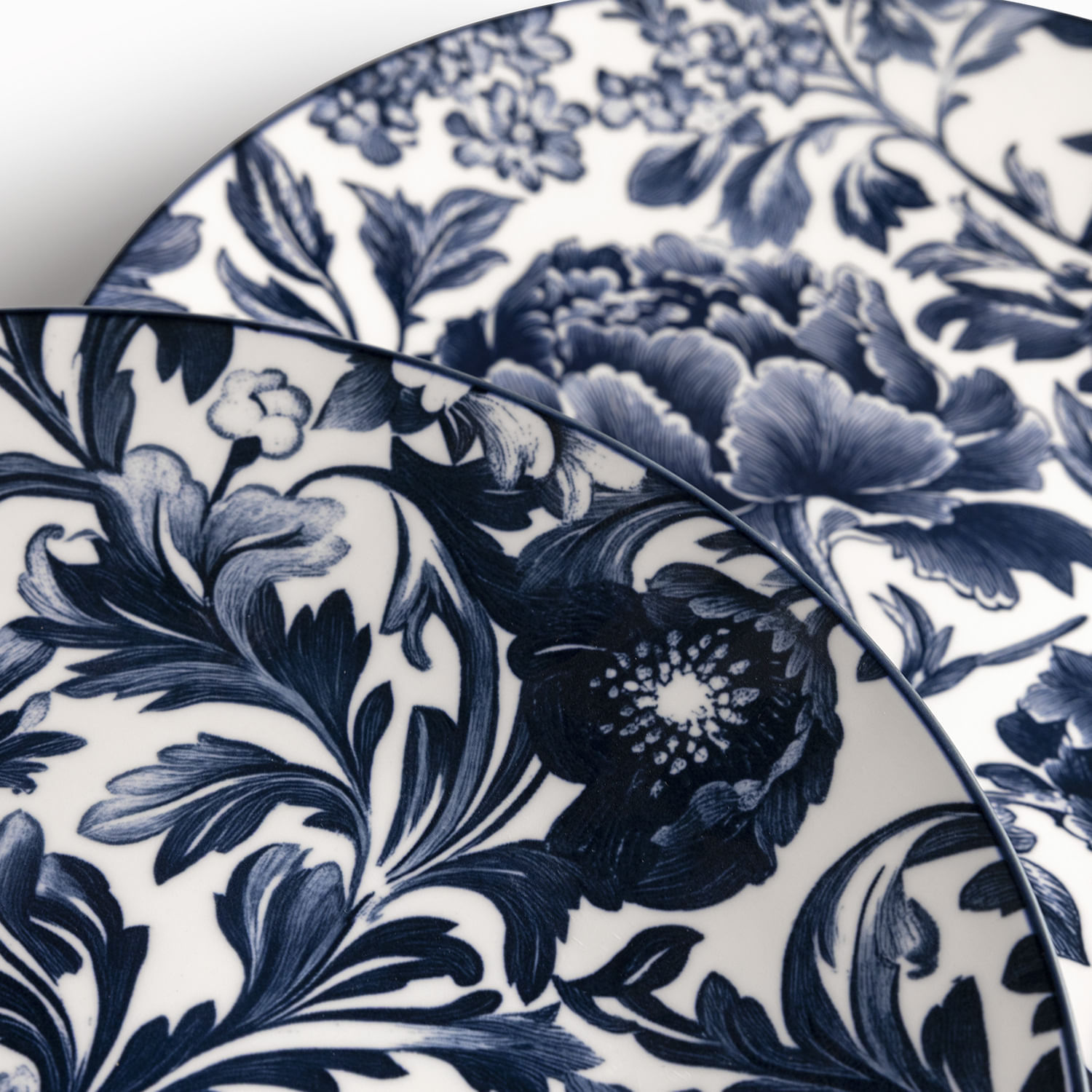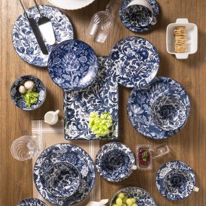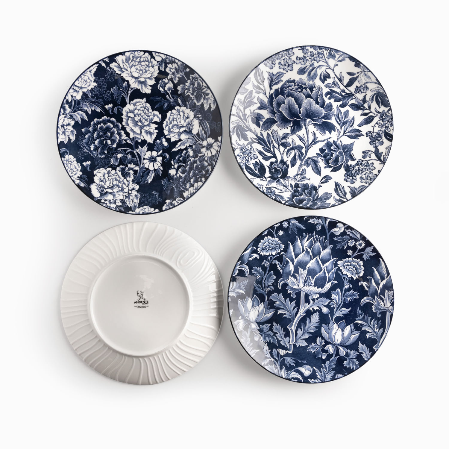 Cada plato presenta un refinado estampado botánico en tonos azules, evocando la sofisticación de la cerámica tradicional y aportando un aire de distinción a tus cenas y almuerzos. Tiene la superficie ideal para presentar platos principales complejos, la presentación en Set x4 asegura uniformidad en tu vajilla.