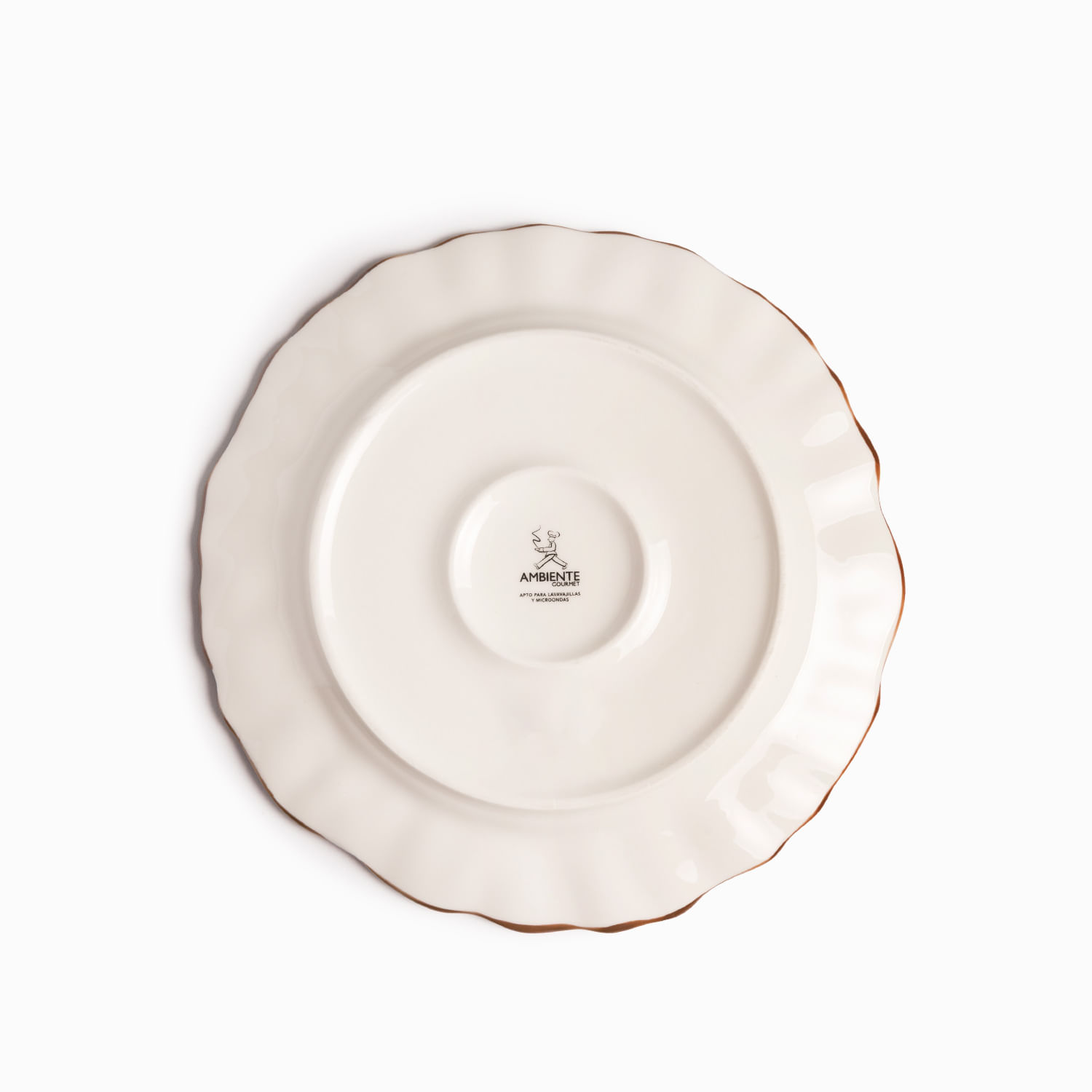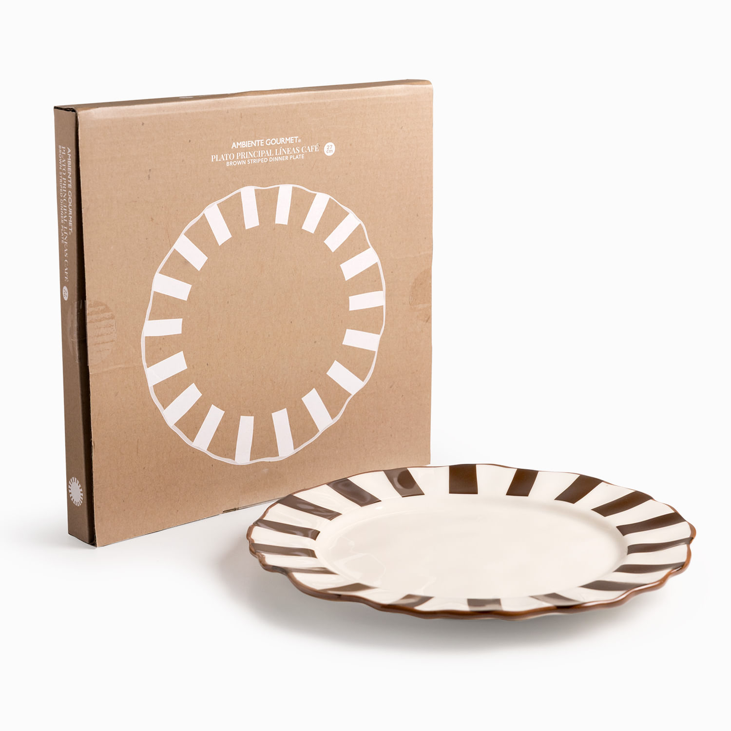 El plato principal Líneas de color café en porcelana destaca por la calidad de sus acabados, el tono café sobre la base blanca aporta una sensación de calma y equilibrio, integrándose fácilmente en decoraciones de estilo rústico-moderno o nórdico. Con un diámetro de 27 cm, ofrece la superficie necesaria para servir porciones generosas con una presentación profesional.