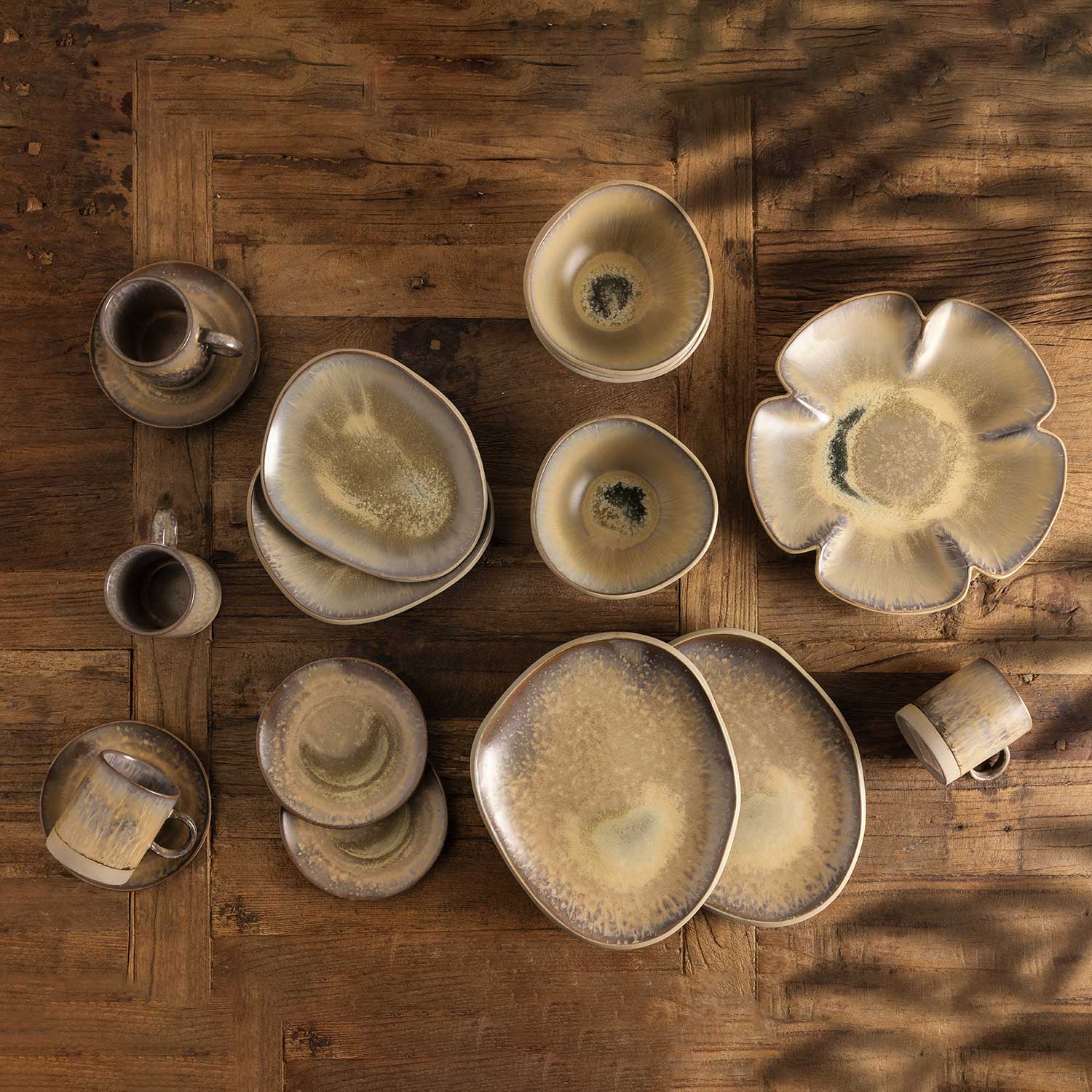 Set de platos principales con cuatro (4) piezas, la vajillas Oasis esta inspirados en los minerales de la naturaleza. Este plato es perfecto para servir platos principales en el desayuno, el almuerzo o la cena.