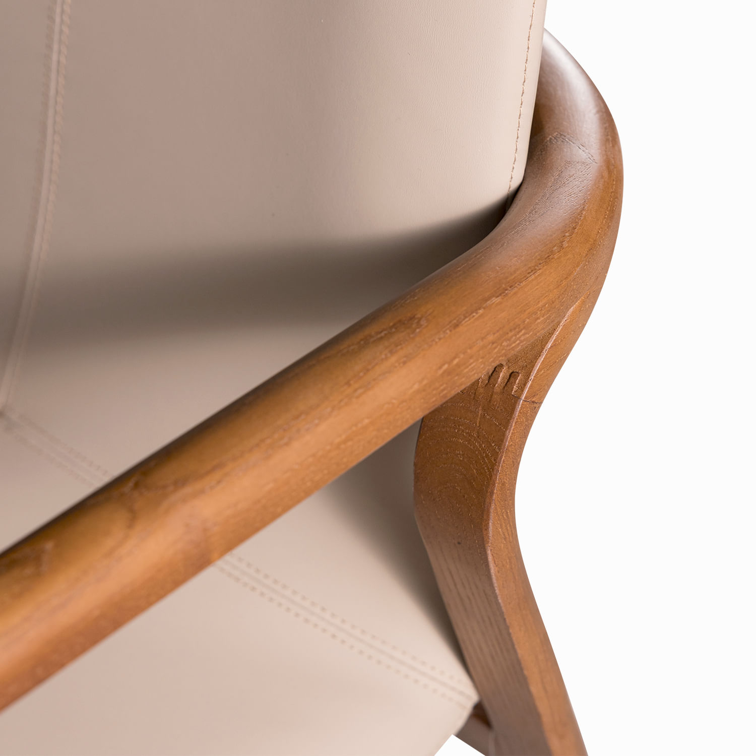| Material | Estructura y patas en madera de olmo, asiento en poliuretano y cuero con relleno en espuma |